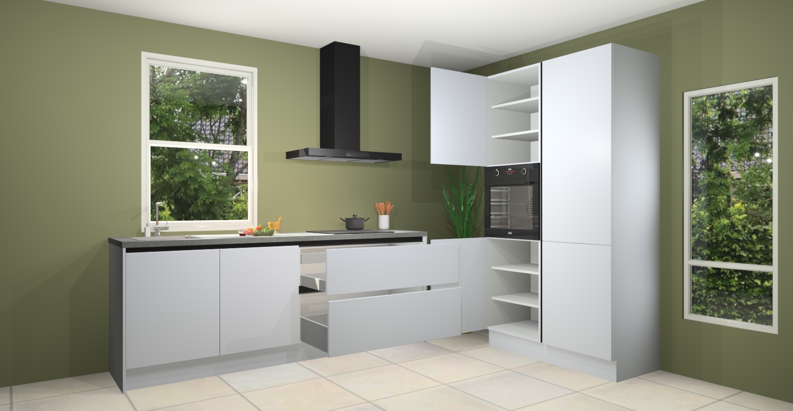 De Sneeuwwitte greeploze keuken Monaco heeft voldoende opbergruimte om uw keukenbenodigdheden georganiseerd en netjes te houden. Geniet van het gemak van de soft-close deuren, die deze stijlvolle look perfect afmaken. Maar dat is nog niet alles. Met de Sneeuwwitte greeploze keuken Monaco krijgt u maar liefst 5 ingebouwde apparaten: een oven, inductiekookplaat, afzuigkap, vaatwasser en koelkast. Deze kunnen gemakkelijk worden geüpgraded naar AEG als ze besteld zijn.