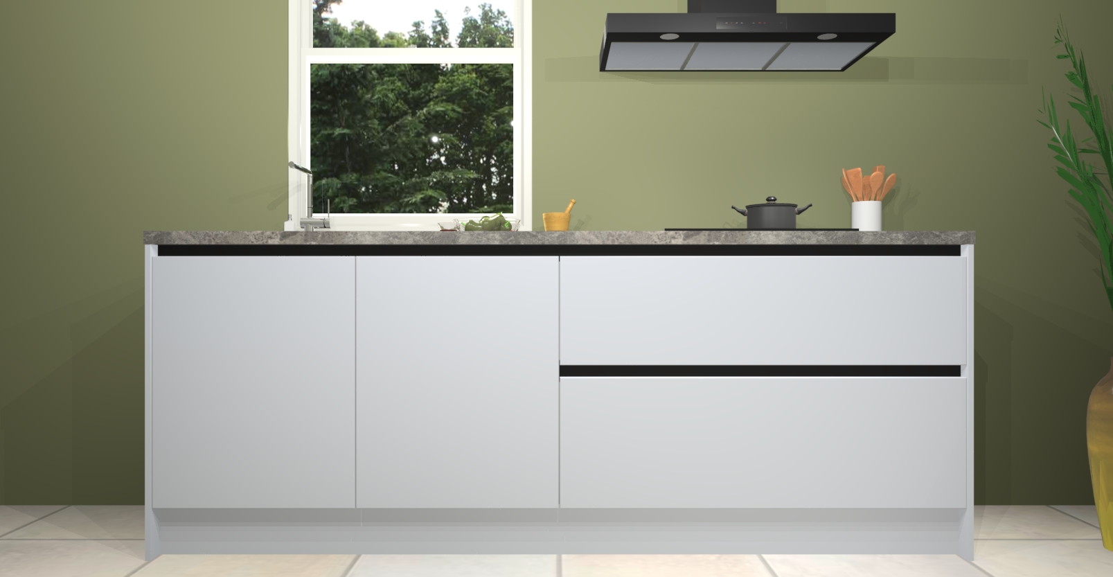 Inclusief plinten, stelpoten en werkblad
