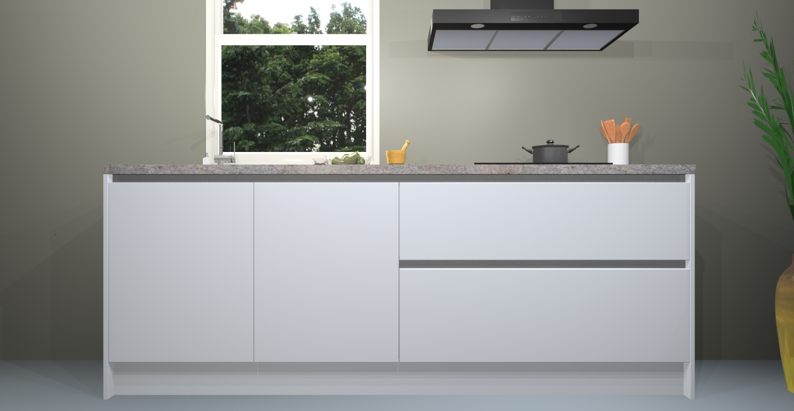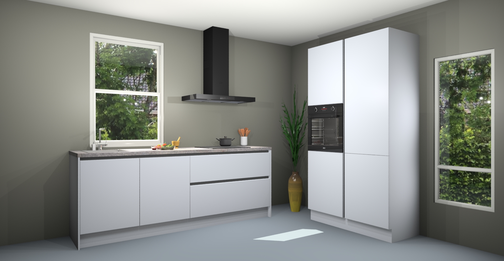 De Sneeuwwitte greeploze keuken Monaco heeft voldoende opbergruimte om uw keukenbenodigdheden georganiseerd en netjes te houden. Geniet van het gemak van de soft-close deuren, die deze stijlvolle look perfect afmaken. Maar dat is nog niet alles. Met de Sneeuwwitte greeploze keuken Monaco krijgt u maar liefst 5 ingebouwde apparaten: een oven, inductiekookplaat, afzuigkap, vaatwasser en koelkast. Deze kunnen gemakkelijk worden geüpgraded naar AEG als ze besteld zijn.