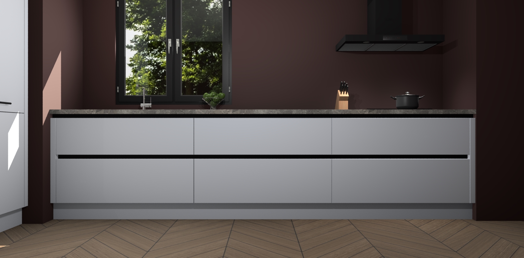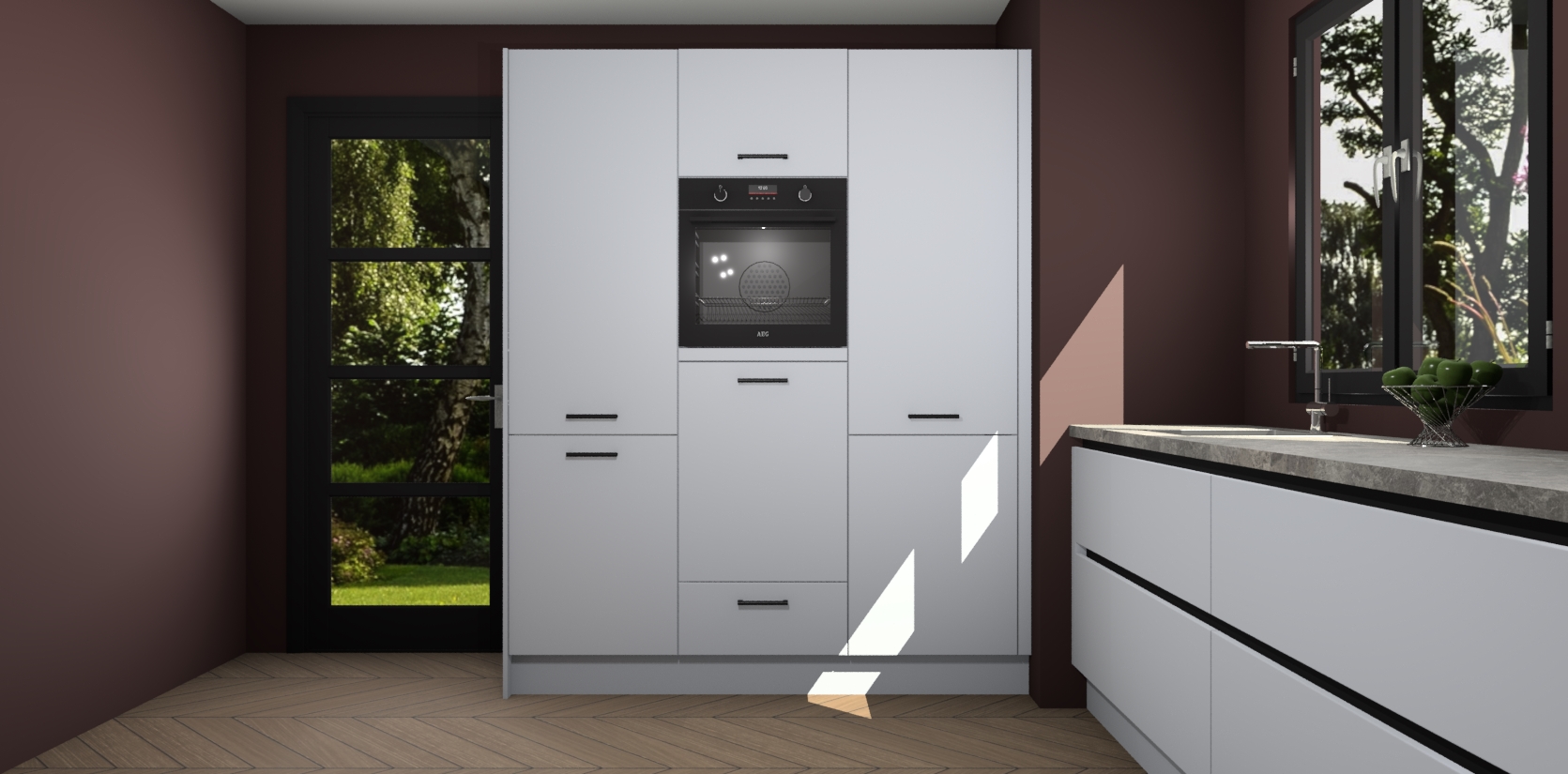 De softclose deuren openen en sluiten is ook heel eenvoudig - geniet van een moeiteloze keukenervaring, zelfs als er kinderen rondlopen. Voor extra gemak bij het plaatsen van uw bestelling bieden we ook een upgrade naar een kookplaat met geïntegreerde afzuiging.