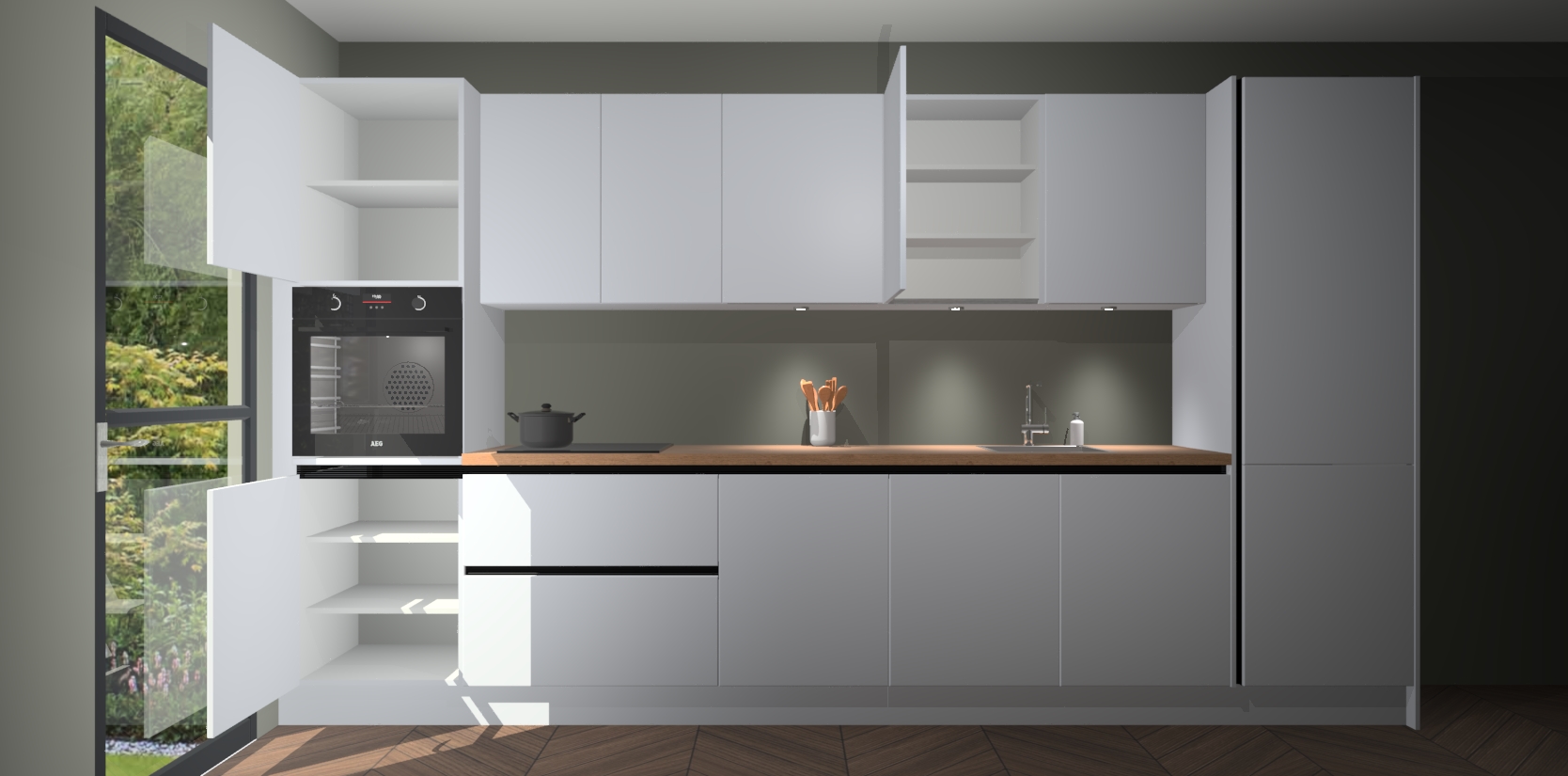 Dit is de perfecte keuken voor wie op zoek is naar een luxueuze stijl zonder zijn portemonnee te legen! Het chique ontwerp van de sneeuwwitte greeploze keuken Wels voegt dat vleugje verfijning toe aan elk huis. Het gemak van voorgemonteerde kasten bespaart u talloze uren tijd en energie, zodat u veel sneller dan verwacht kunt beginnen te genieten van uw prachtige nieuwe keuken. Bovendien bedraagt de levertijd slechts 7 weken.