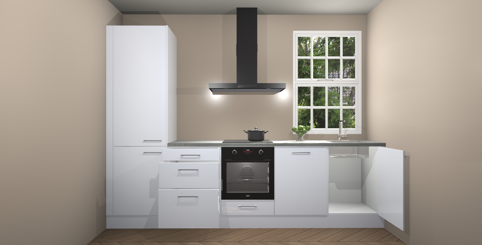 Inclusief plinten, stelpoten en werkblad