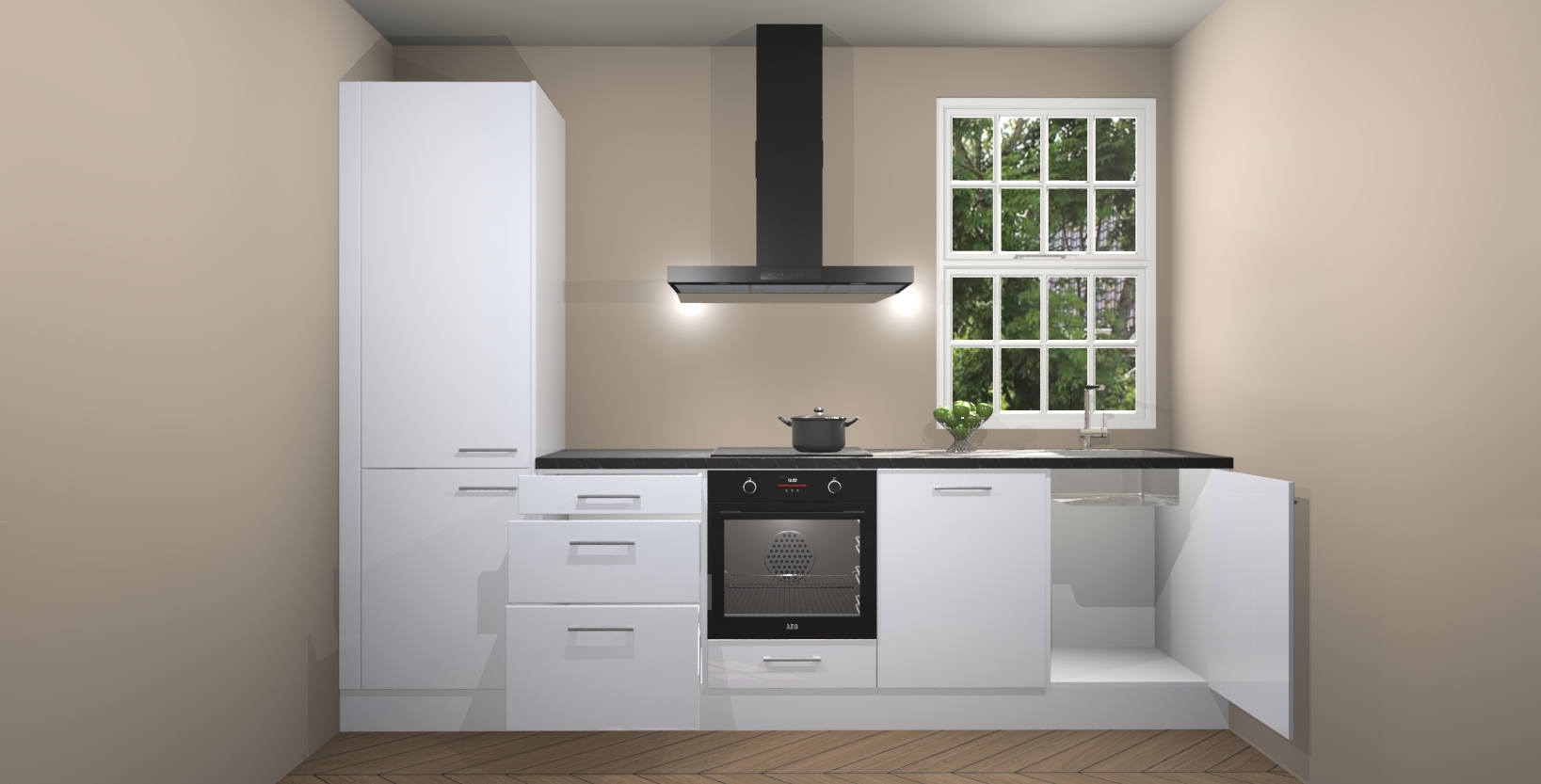 Inclusief plinten, stelpoten en werkblad