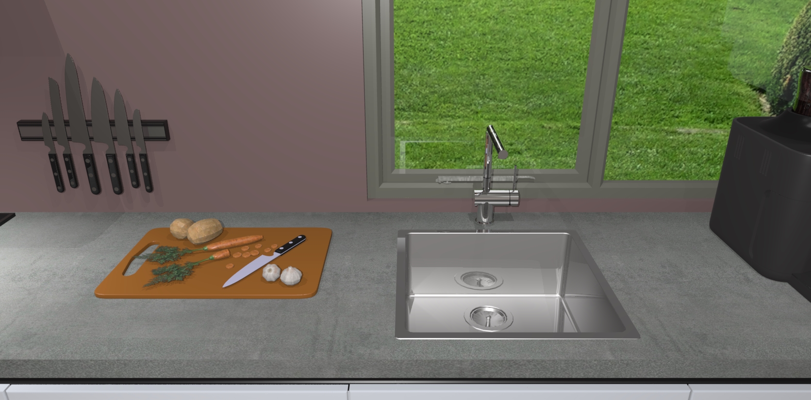 - De spoelbak is nog niet in gevreesd. Dit dient tijdens het werk gedaan te worden