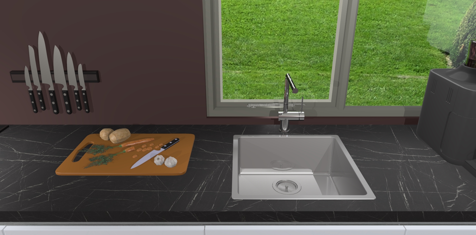 - De spoelbak is nog niet in gevreesd. Dit dient tijdens het werk gedaan te worden