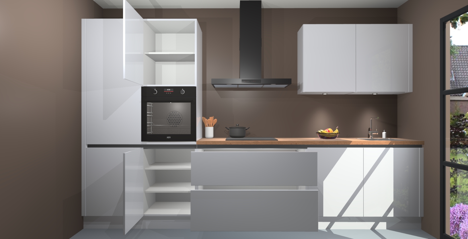 Bovendien is er veel opbergruimte met deze pracht keuken, zodat u ervoor kunt zorgen dat uw kasten en lades altijd georganiseerd zijn - iets wat iedereen waardeert in een drukke keuken. Niemand houdt van een lawaaierige keuken als u de deuren opent en sluit; dankzij de soft close technologie gaat het openen en sluiten van de deuren geruisloos! Bovendien krijgt u de levering binnen 7 weken - hoe geweldig is dat?