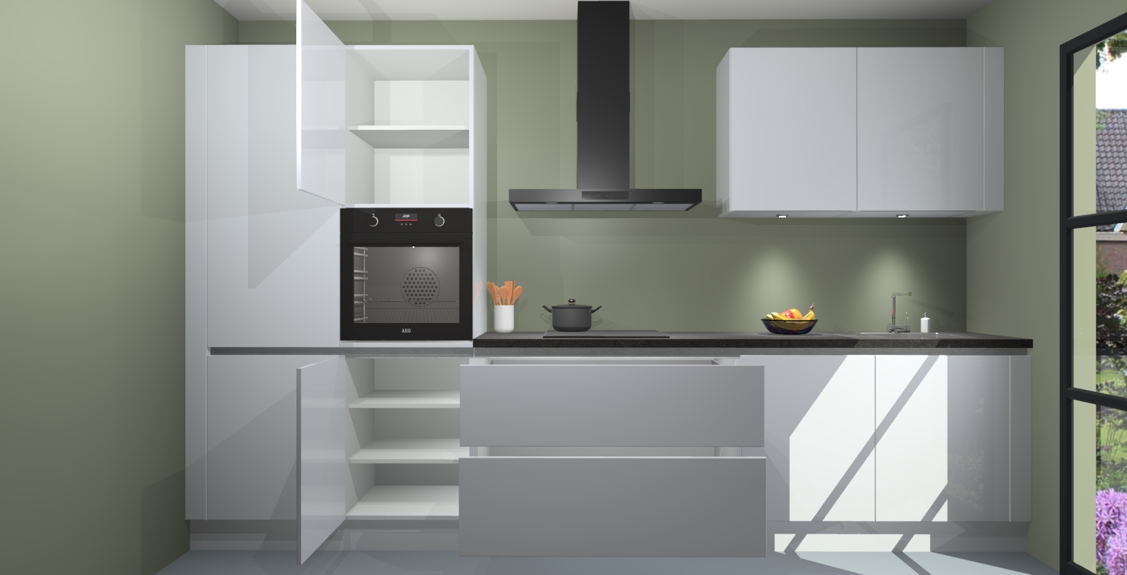 Bovendien is er veel opbergruimte met deze pracht keuken, zodat u ervoor kunt zorgen dat uw kasten en lades altijd georganiseerd zijn - iets wat iedereen waardeert in een drukke keuken. Niemand houdt van een lawaaierige keuken als u de deuren opent en sluit; dankzij de soft close technologie gaat het openen en sluiten van de deuren geruisloos! Bovendien krijgt u de levering binnen 7 weken - hoe geweldig is dat?
