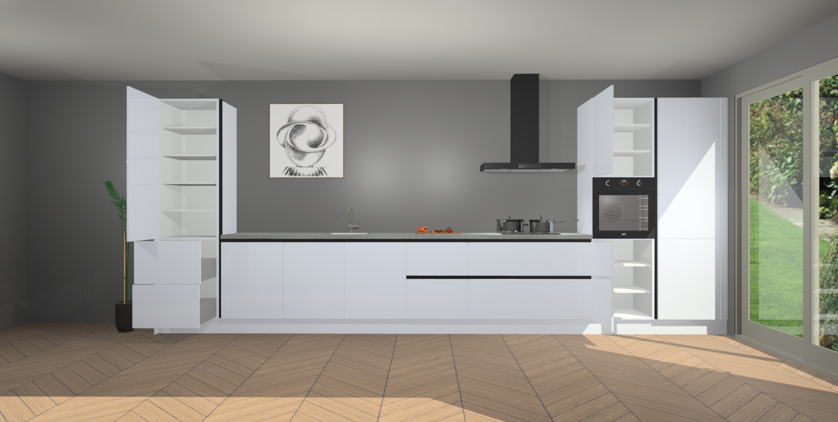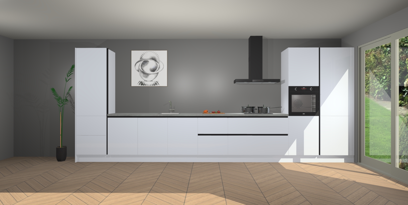 De Sneeuwwitte hoogglans greeploze keuken Barentsburg is de perfecte combinatie van stijl en functionaliteit. Het strakke design geeft uw keuken een moderne look die jarenlang meegaat. Bovendien zorgen onze deuren met softclose voor extra gebruiksgemak en gemoedsrust.