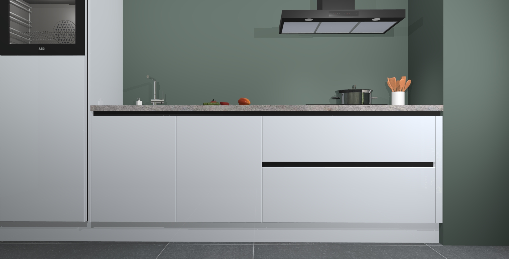 Inclusief plinten, stelpoten en werkblad