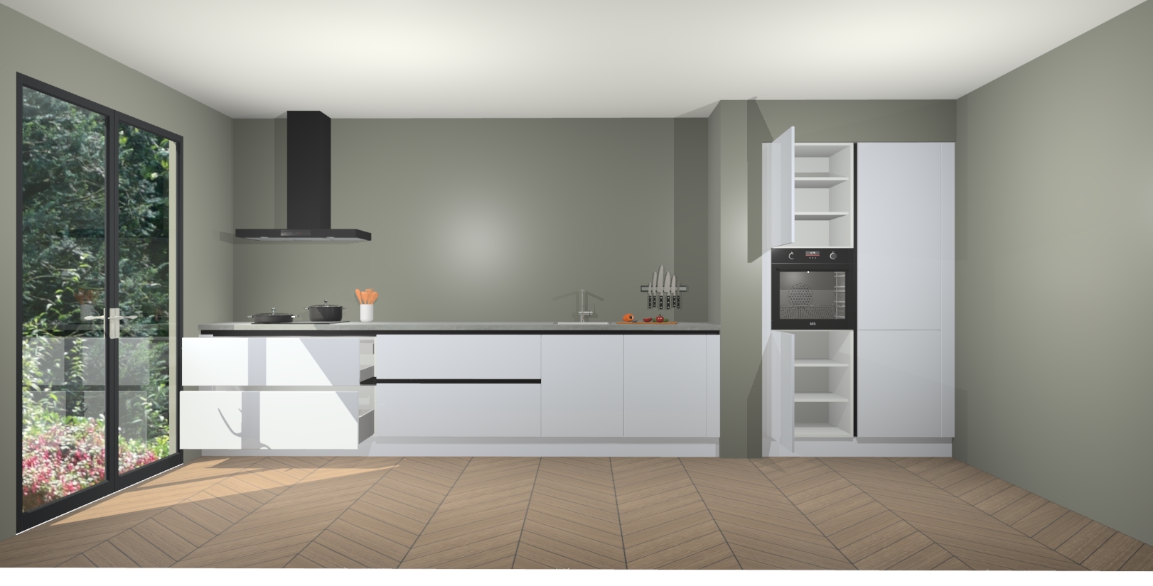 Met de Sneeuwwitte hoogglans greeploze keuken Calgary Maakt u van uw keuken het pronkstuk van uw huis. Stijlvol en toch praktisch, de nieuwste look voor wie meer waarde en charme aan zijn huis wil toevoegen. Met prachtige handgrepen die zich lenen voor een klassieke stijlbron, zal u niet teleurgesteld zijn in het resultaat. De soft-close deurscharnieren geven een gevoel van luxe omdat ze zachtjes bewegen zonder storende of krakende geluiden te veroorzaken.