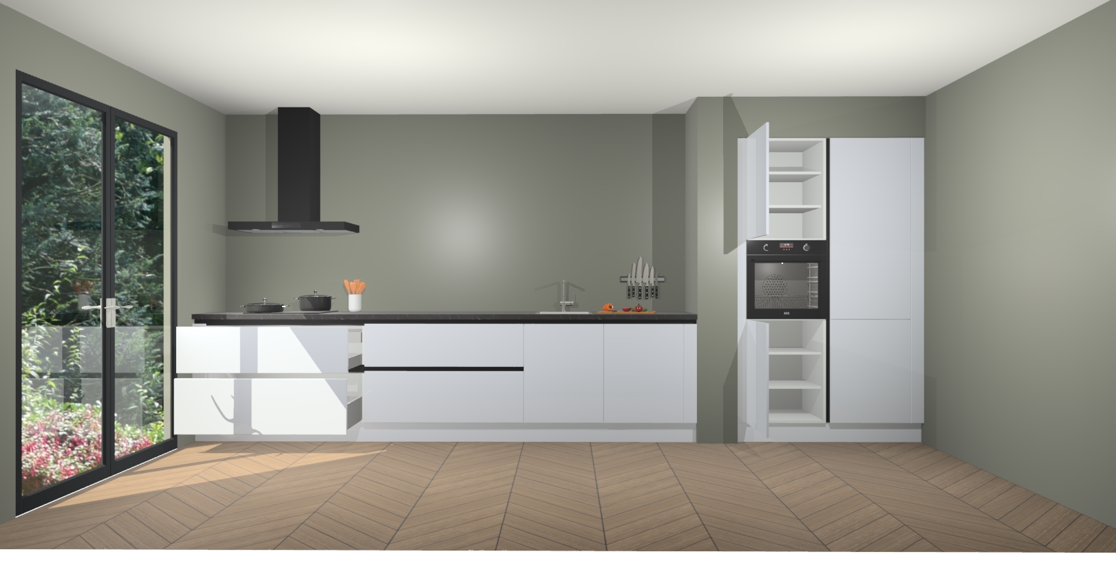 Met de Sneeuwwitte hoogglans greeploze keuken Calgary Maakt u van uw keuken het pronkstuk van uw huis. Stijlvol en toch praktisch, de nieuwste look voor wie meer waarde en charme aan zijn huis wil toevoegen. Met prachtige handgrepen die zich lenen voor een klassieke stijlbron, zal u niet teleurgesteld zijn in het resultaat. De soft-close deurscharnieren geven een gevoel van luxe omdat ze zachtjes bewegen zonder storende of krakende geluiden te veroorzaken.