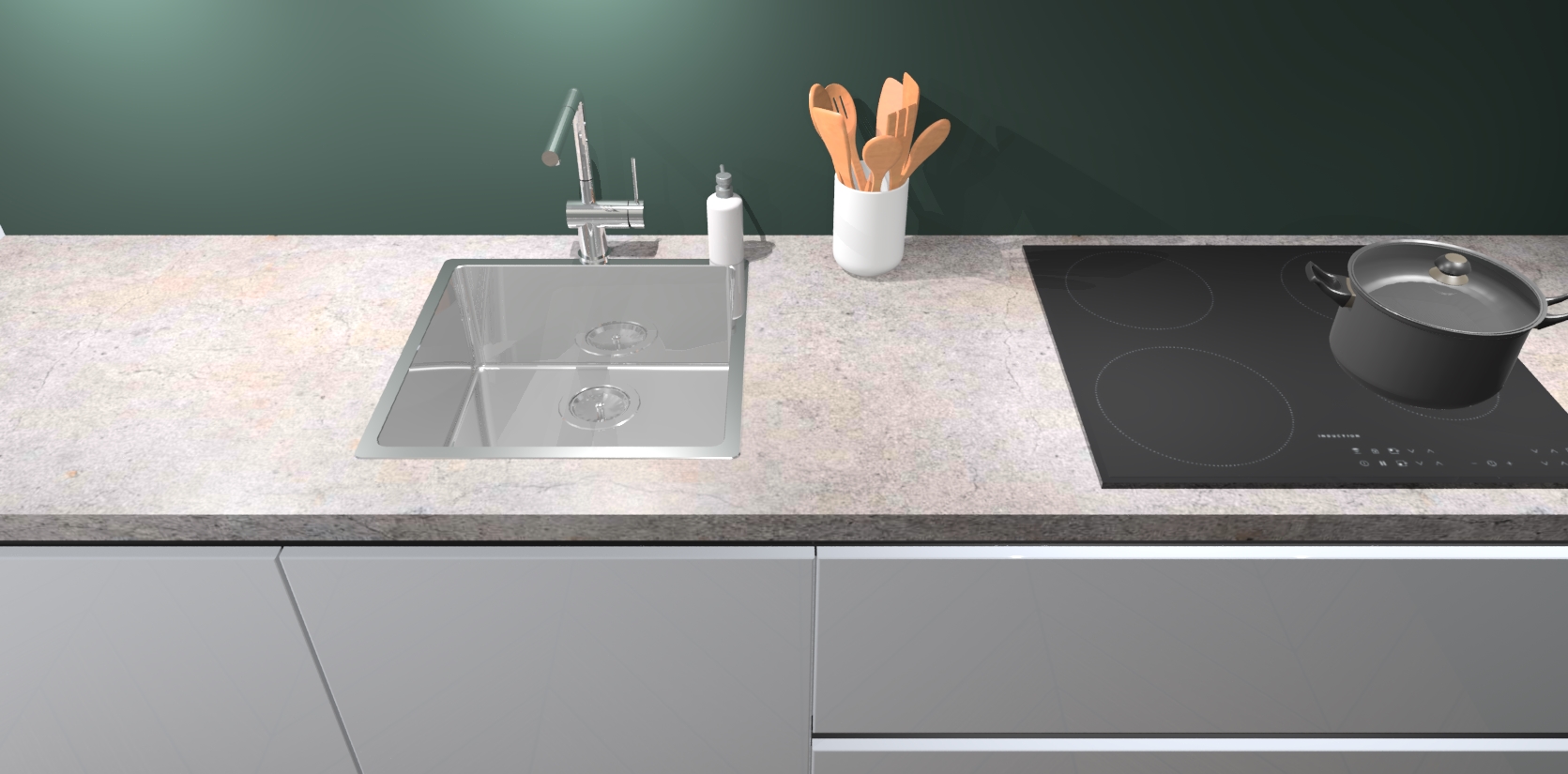 - Uitsparing van kookplaat, spoelbak en kraan dient u zelf te verzorgen.