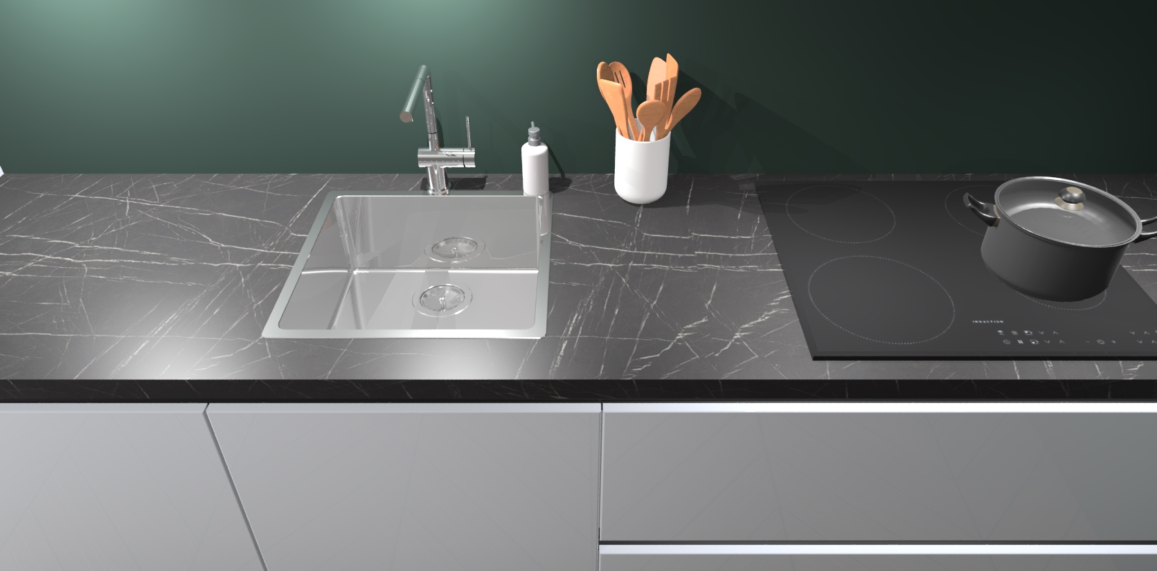 - Bij een hoekwerkblad zijn de hoeken in gevreesd en op maat gemaakt