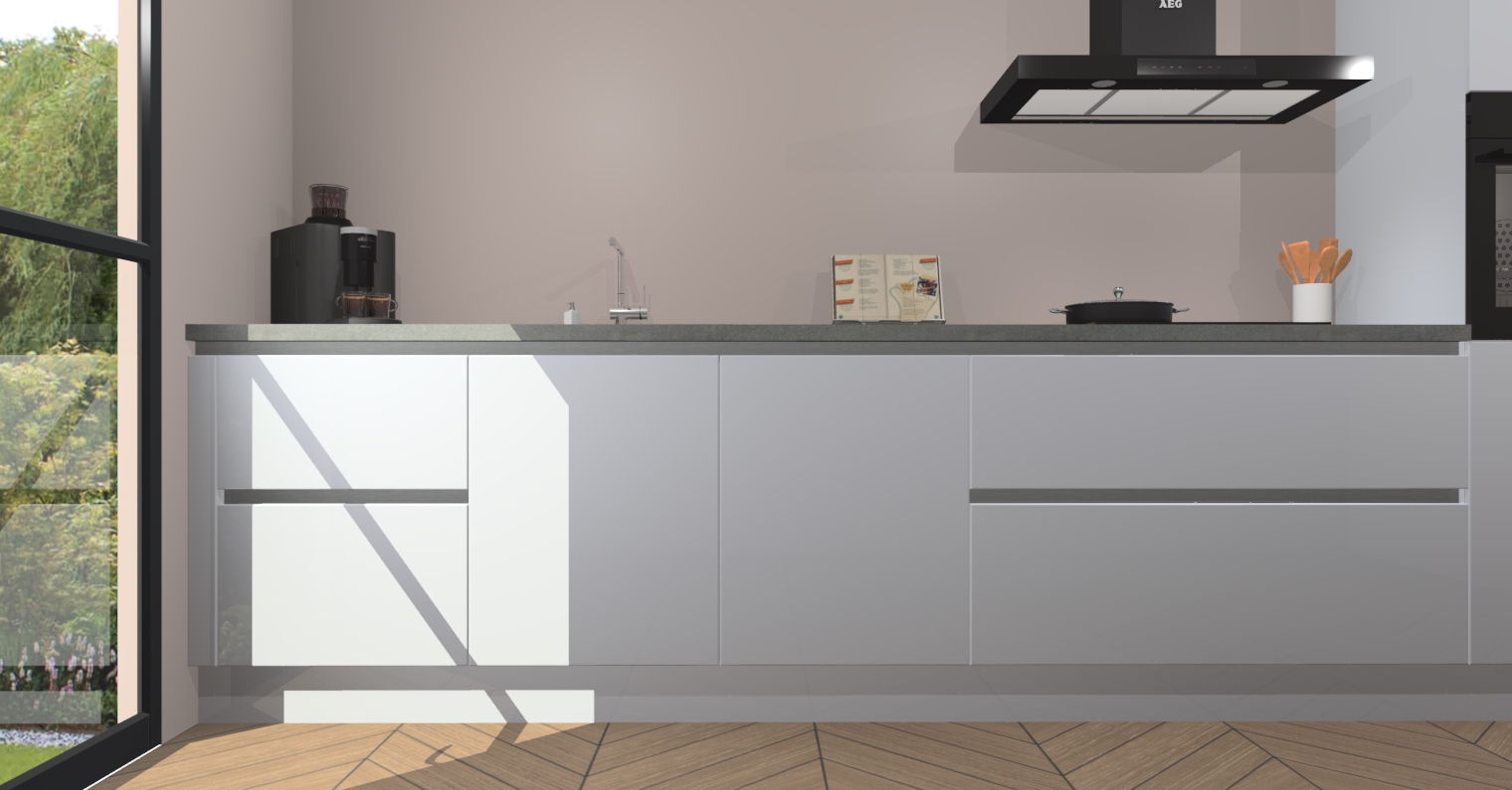 - De plint wordt c.a. 5 mm lager dan de ''plint hoogte'', dit heeft u nodig voor de beluchting en afstelmogelijkheid