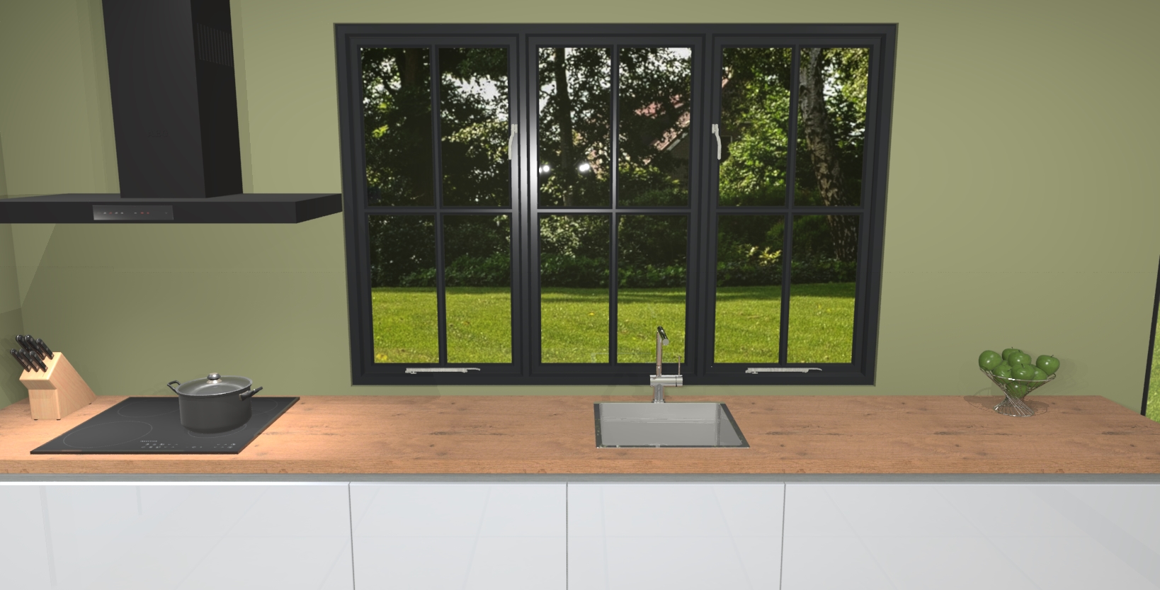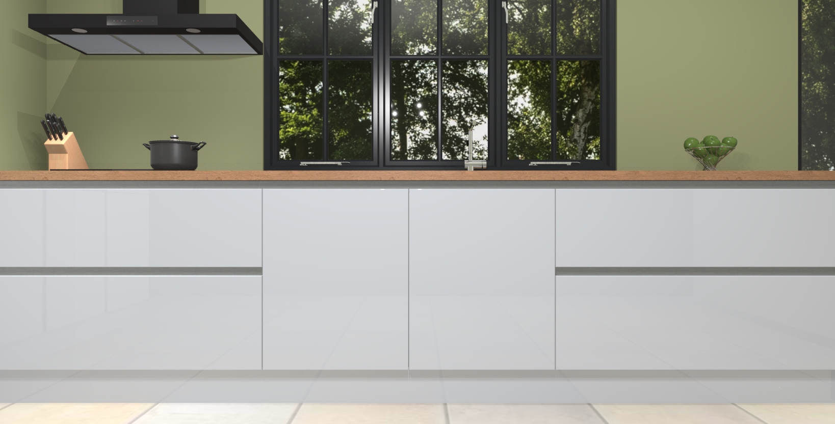De softclose deuren openen en sluiten is ook heel eenvoudig - geniet van een moeiteloze keukenervaring, zelfs als er kinderen rondlopen. Voor extra gemak bij het plaatsen van uw bestelling bieden we ook een upgrade naar een kookplaat met geïntegreerde afzuiging.