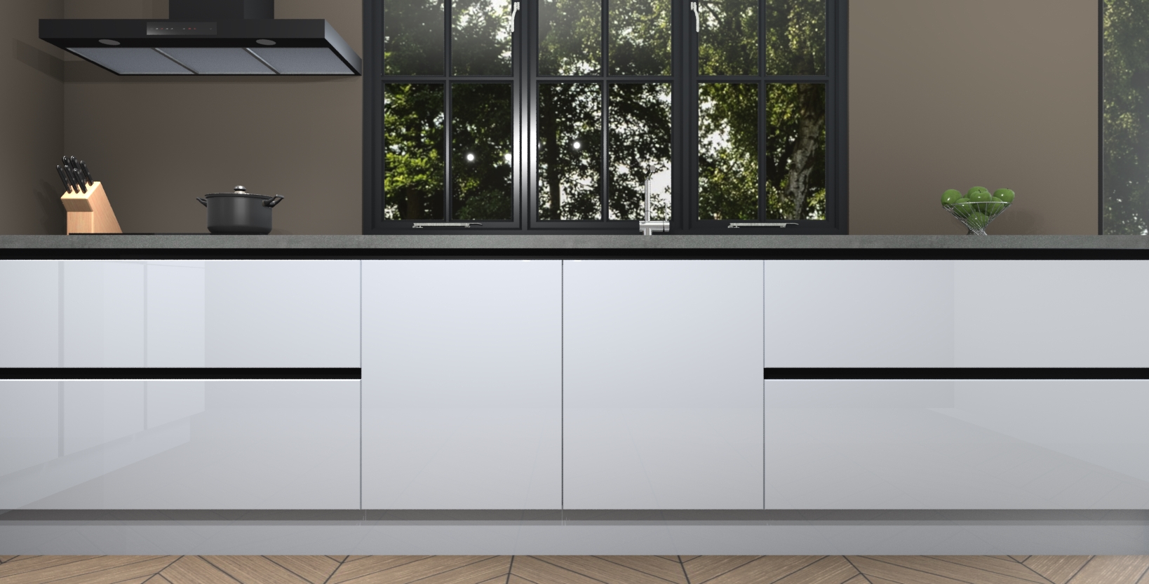De softclose deuren openen en sluiten is ook heel eenvoudig - geniet van een moeiteloze keukenervaring, zelfs als er kinderen rondlopen. Voor extra gemak bij het plaatsen van uw bestelling bieden we ook een upgrade naar een kookplaat met geïntegreerde afzuiging.