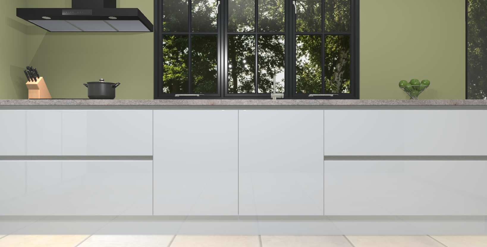 De softclose deuren openen en sluiten is ook heel eenvoudig - geniet van een moeiteloze keukenervaring, zelfs als er kinderen rondlopen. Voor extra gemak bij het plaatsen van uw bestelling bieden we ook een upgrade naar een kookplaat met geïntegreerde afzuiging.