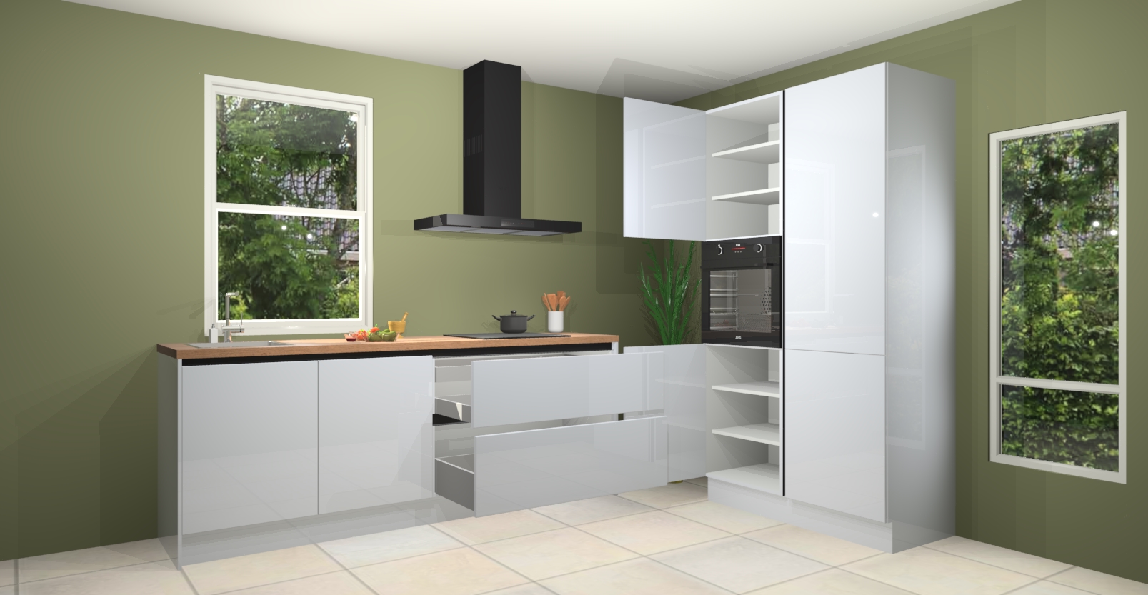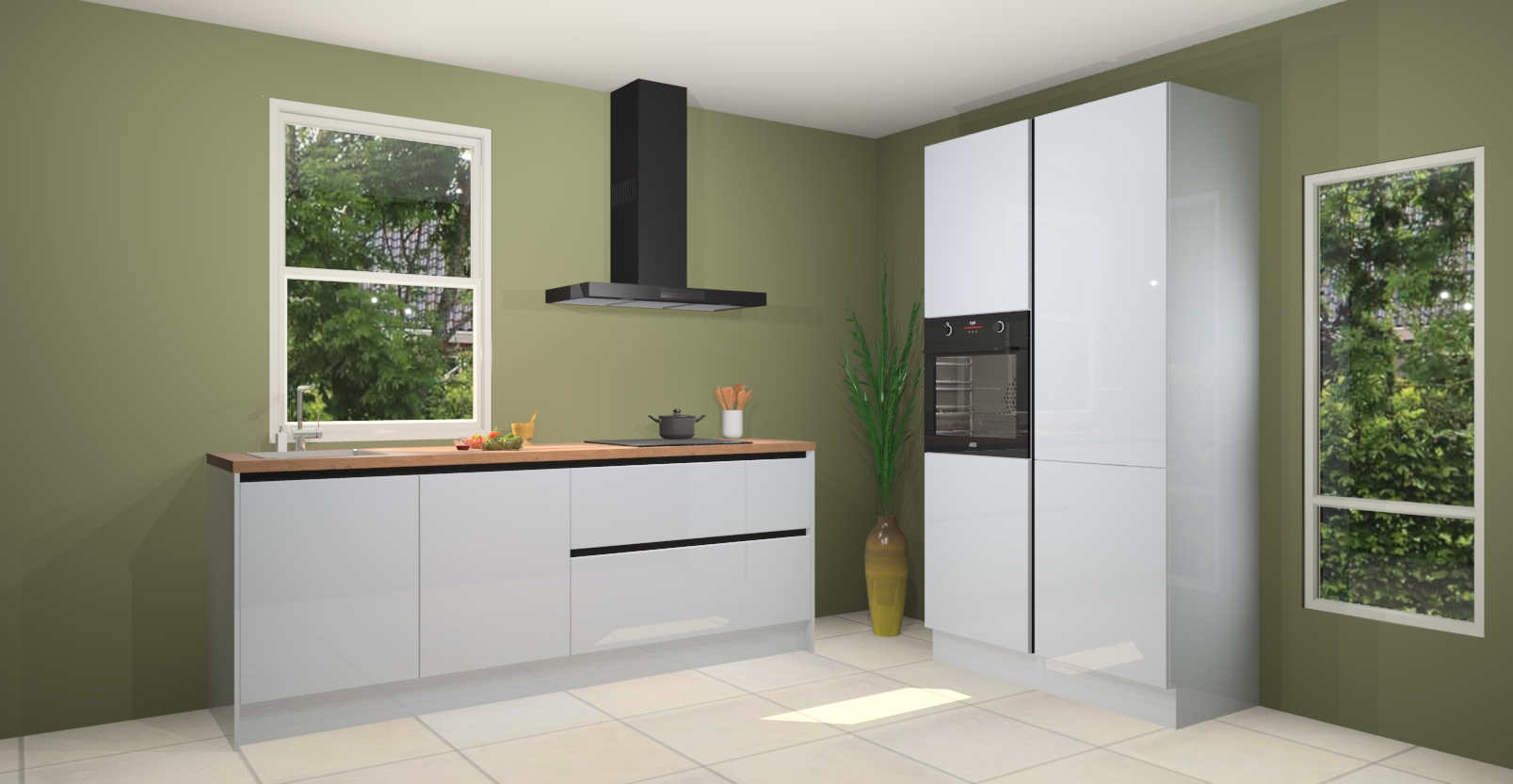 De Sneeuwwitte hoogglans greeploze keuken Monaco heeft voldoende opbergruimte om uw keukenbenodigdheden georganiseerd en netjes te houden. Geniet van het gemak van de soft-close deuren, die deze stijlvolle look perfect afmaken. Maar dat is nog niet alles. Met de Sneeuwwitte hoogglans greeploze keuken Monaco krijgt u maar liefst 5 ingebouwde apparaten: een oven, inductiekookplaat, afzuigkap, vaatwasser en koelkast. Deze kunnen gemakkelijk worden geüpgraded naar AEG als ze besteld zijn.