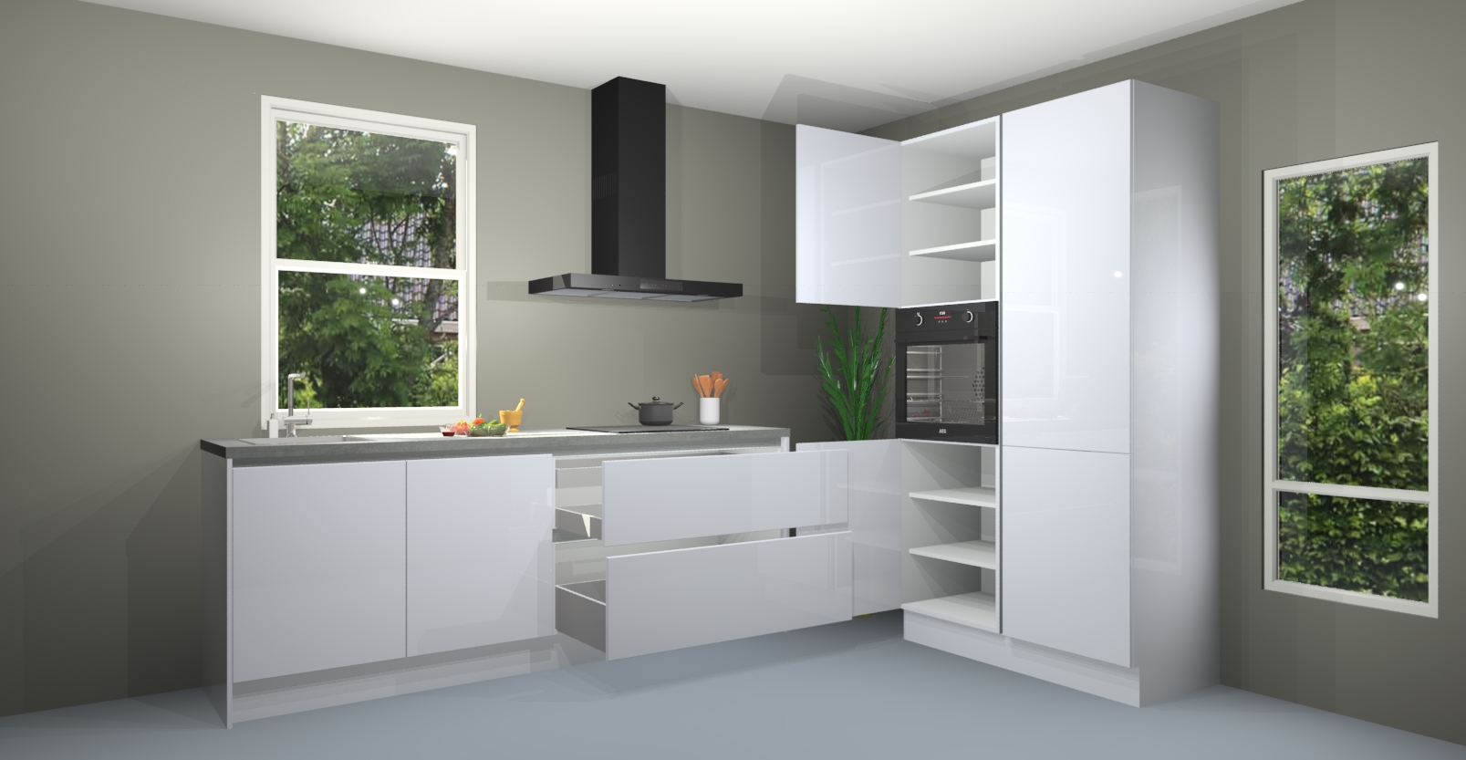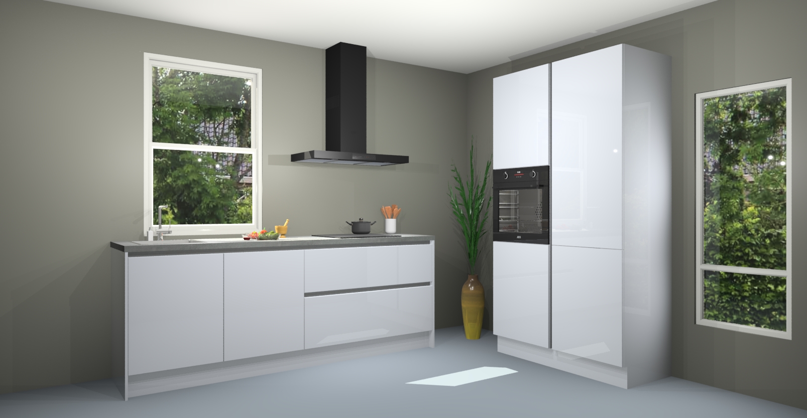 De Sneeuwwitte hoogglans greeploze keuken Monaco heeft voldoende opbergruimte om uw keukenbenodigdheden georganiseerd en netjes te houden. Geniet van het gemak van de soft-close deuren, die deze stijlvolle look perfect afmaken. Maar dat is nog niet alles. Met de Sneeuwwitte hoogglans greeploze keuken Monaco krijgt u maar liefst 5 ingebouwde apparaten: een oven, inductiekookplaat, afzuigkap, vaatwasser en koelkast. Deze kunnen gemakkelijk worden geüpgraded naar AEG als ze besteld zijn.