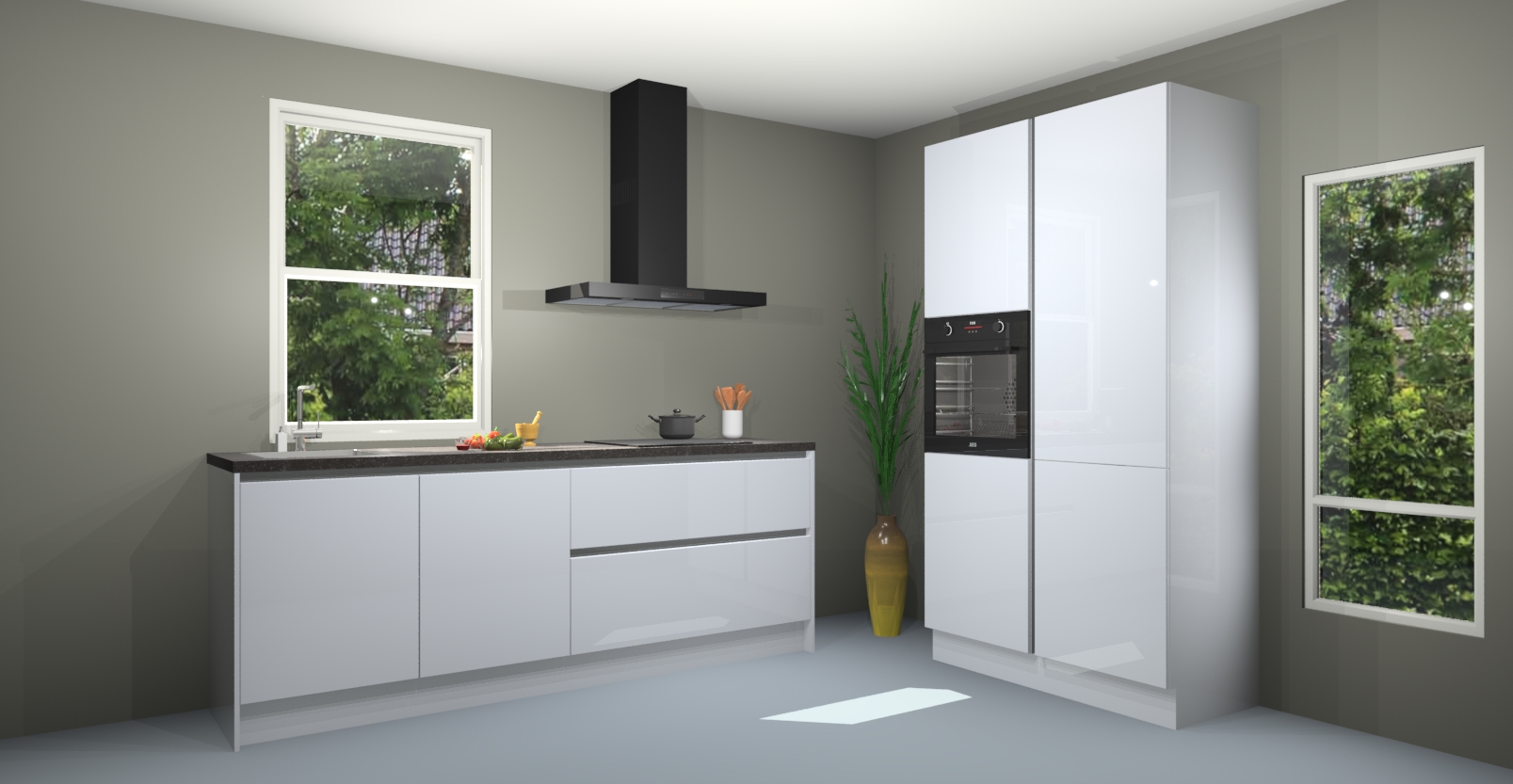 De Sneeuwwitte hoogglans greeploze keuken Monaco heeft voldoende opbergruimte om uw keukenbenodigdheden georganiseerd en netjes te houden. Geniet van het gemak van de soft-close deuren, die deze stijlvolle look perfect afmaken. Maar dat is nog niet alles. Met de Sneeuwwitte hoogglans greeploze keuken Monaco krijgt u maar liefst 5 ingebouwde apparaten: een oven, inductiekookplaat, afzuigkap, vaatwasser en koelkast. Deze kunnen gemakkelijk worden geüpgraded naar AEG als ze besteld zijn.