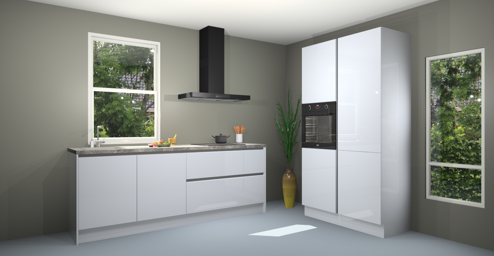 De Sneeuwwitte hoogglans greeploze keuken Monaco heeft voldoende opbergruimte om uw keukenbenodigdheden georganiseerd en netjes te houden. Geniet van het gemak van de soft-close deuren, die deze stijlvolle look perfect afmaken. Maar dat is nog niet alles. Met de Sneeuwwitte hoogglans greeploze keuken Monaco krijgt u maar liefst 5 ingebouwde apparaten: een oven, inductiekookplaat, afzuigkap, vaatwasser en koelkast. Deze kunnen gemakkelijk worden geüpgraded naar AEG als ze besteld zijn.