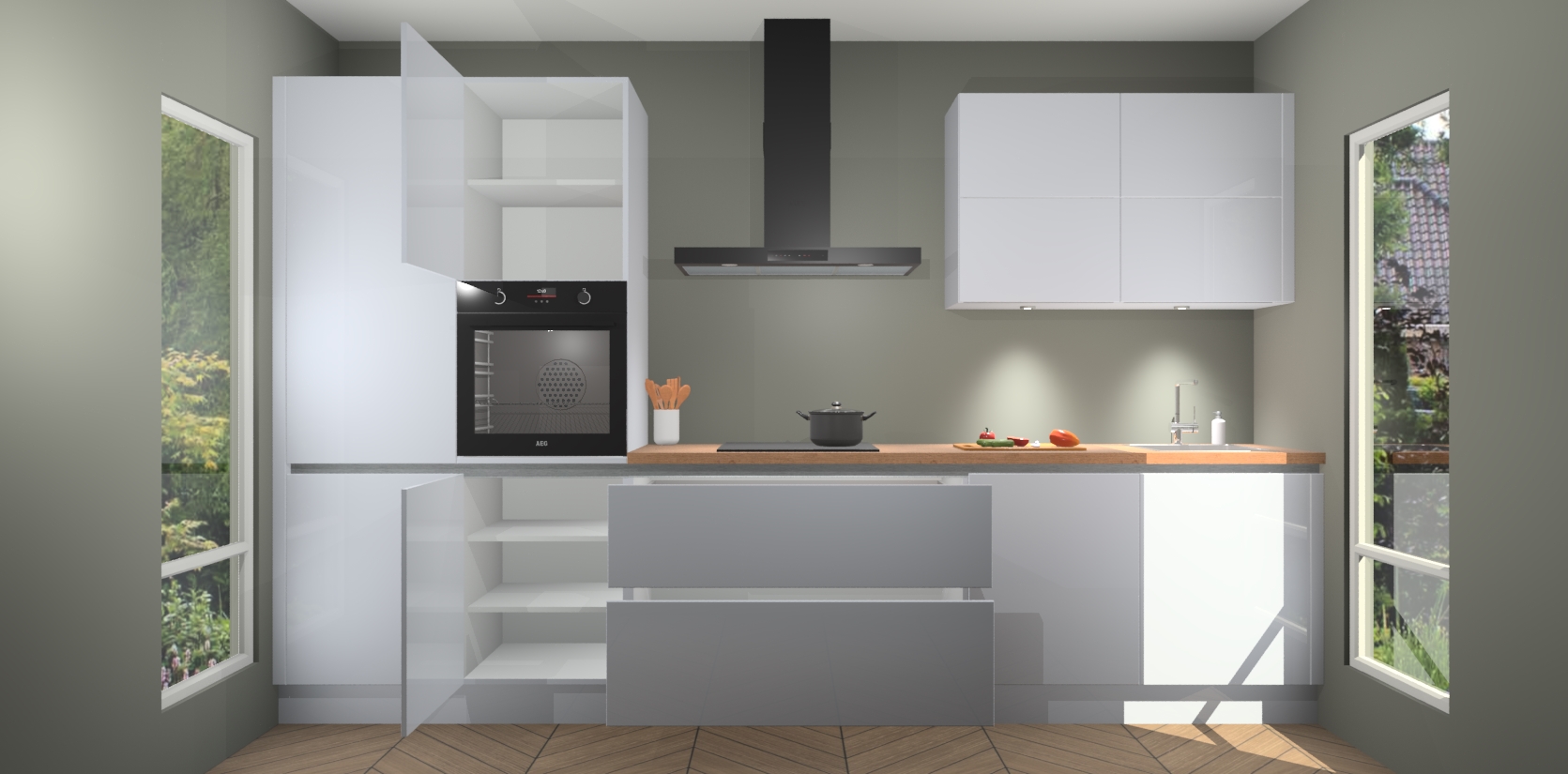 De glanzende afwerking van de deuren is gemaakt met behulp van geavanceerde coatingtechnologie, waardoor schoonmaken na het eten eenvoudig en efficiënt is. Bovendien zijn er geen handgrepen nodig, waardoor deze keuken zowel modern als verfijnd is. Of u nu op zoek bent naar een minimalistische toevoeging aan een hedendaags huis of naar iets stijlvollers en tijdlozers in een traditionele huiselijke omgeving, onze Sneeuwwitte hoogglans greeploze Keuken Parijs is een geweldige oplossing.