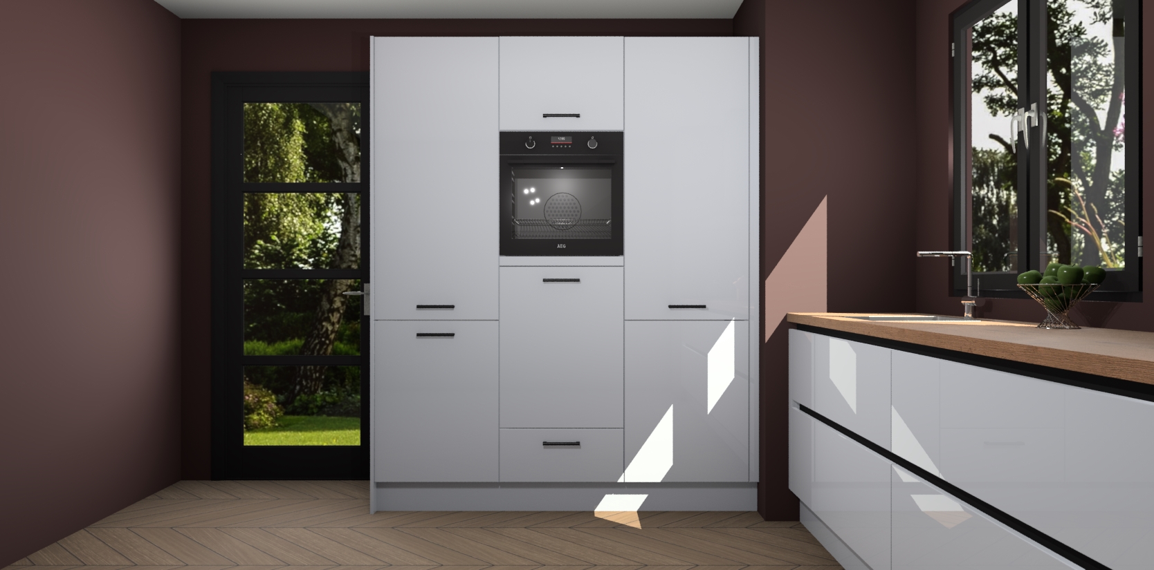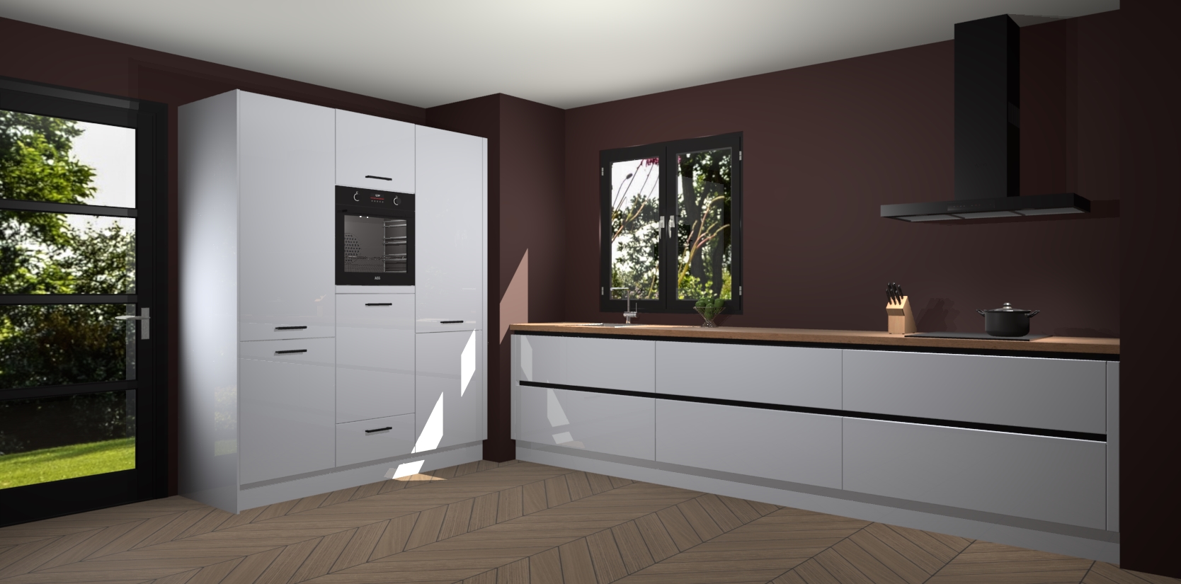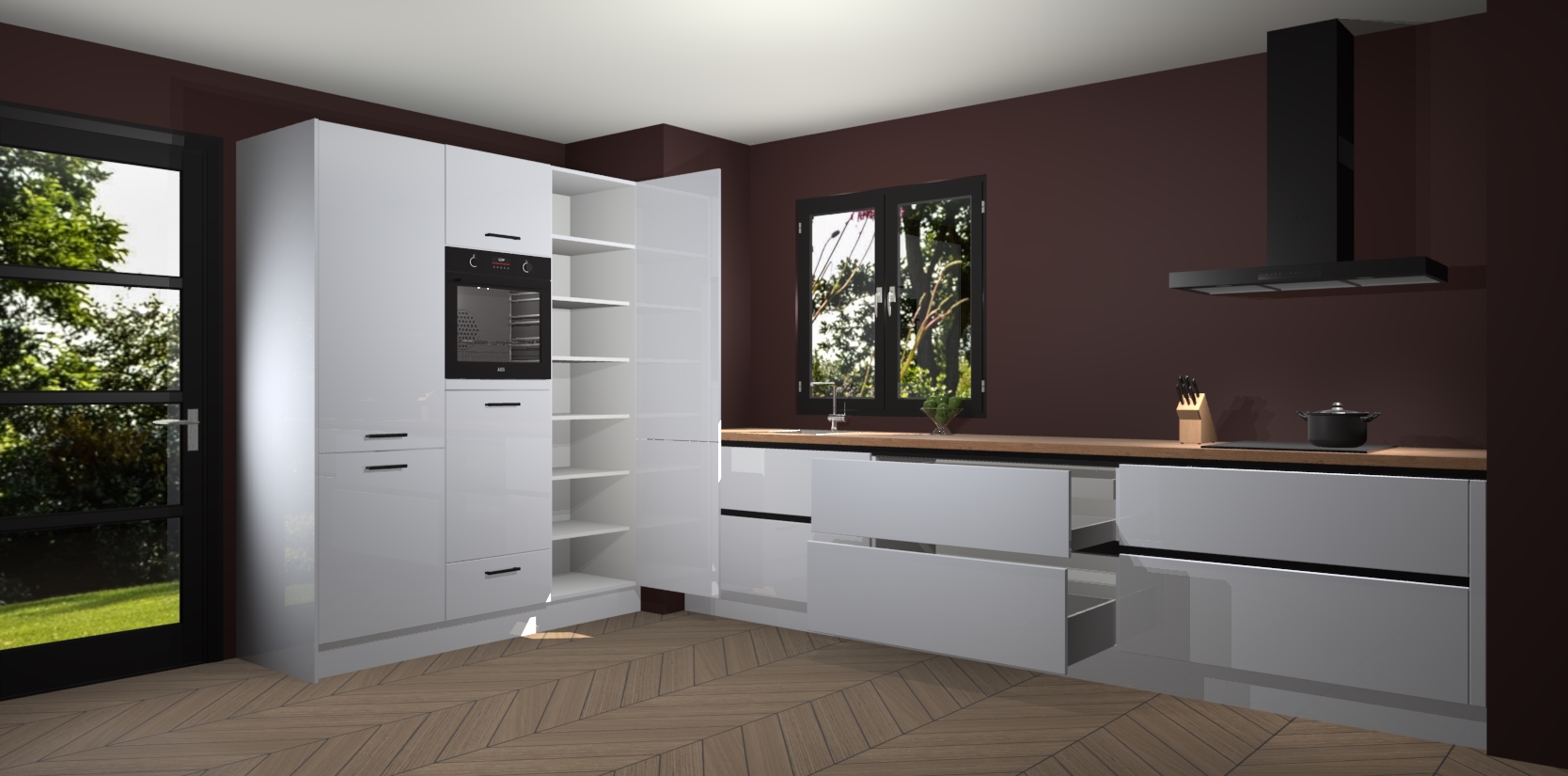 De softclose deuren openen en sluiten is ook heel eenvoudig - geniet van een moeiteloze keukenervaring, zelfs als er kinderen rondlopen. Voor extra gemak bij het plaatsen van uw bestelling bieden we ook een upgrade naar een kookplaat met geïntegreerde afzuiging.
