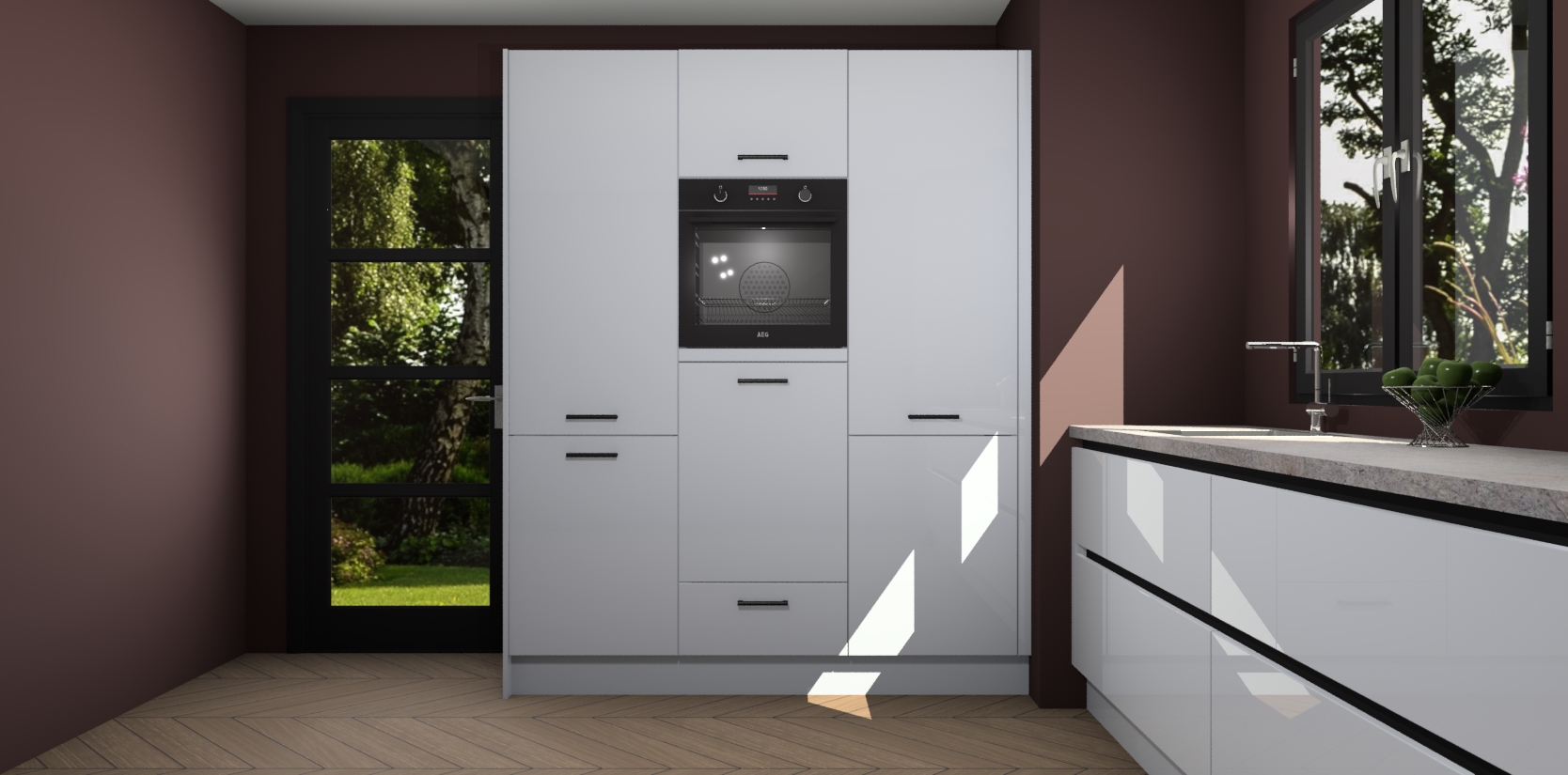 De softclose deuren openen en sluiten is ook heel eenvoudig - geniet van een moeiteloze keukenervaring, zelfs als er kinderen rondlopen. Voor extra gemak bij het plaatsen van uw bestelling bieden we ook een upgrade naar een kookplaat met geïntegreerde afzuiging.
