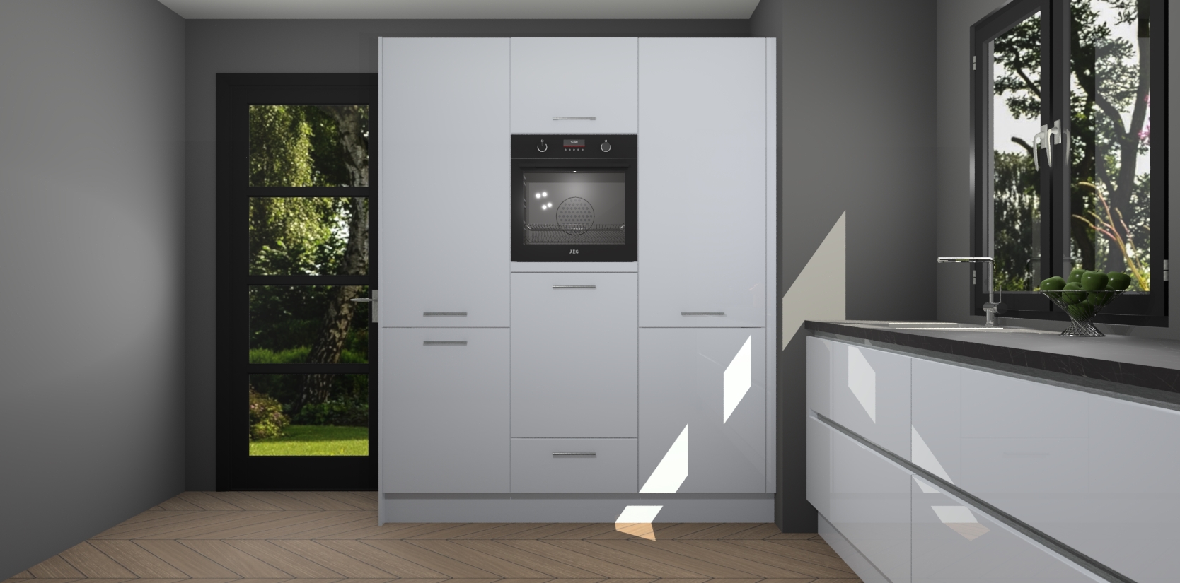 De softclose deuren openen en sluiten is ook heel eenvoudig - geniet van een moeiteloze keukenervaring, zelfs als er kinderen rondlopen. Voor extra gemak bij het plaatsen van uw bestelling bieden we ook een upgrade naar een kookplaat met geïntegreerde afzuiging.