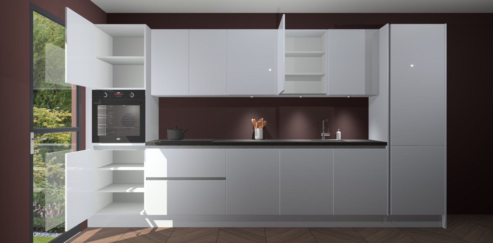 Dit is de perfecte keuken voor wie op zoek is naar een luxueuze stijl zonder zijn portemonnee te legen! Het chique ontwerp van de sneeuwwitte hoogglans greeploze keuken Wels voegt dat vleugje verfijning toe aan elk huis. Het gemak van voorgemonteerde kasten bespaart u talloze uren tijd en energie, zodat u veel sneller dan verwacht kunt beginnen te genieten van uw prachtige nieuwe keuken. Bovendien bedraagt de levertijd slechts 7 weken.