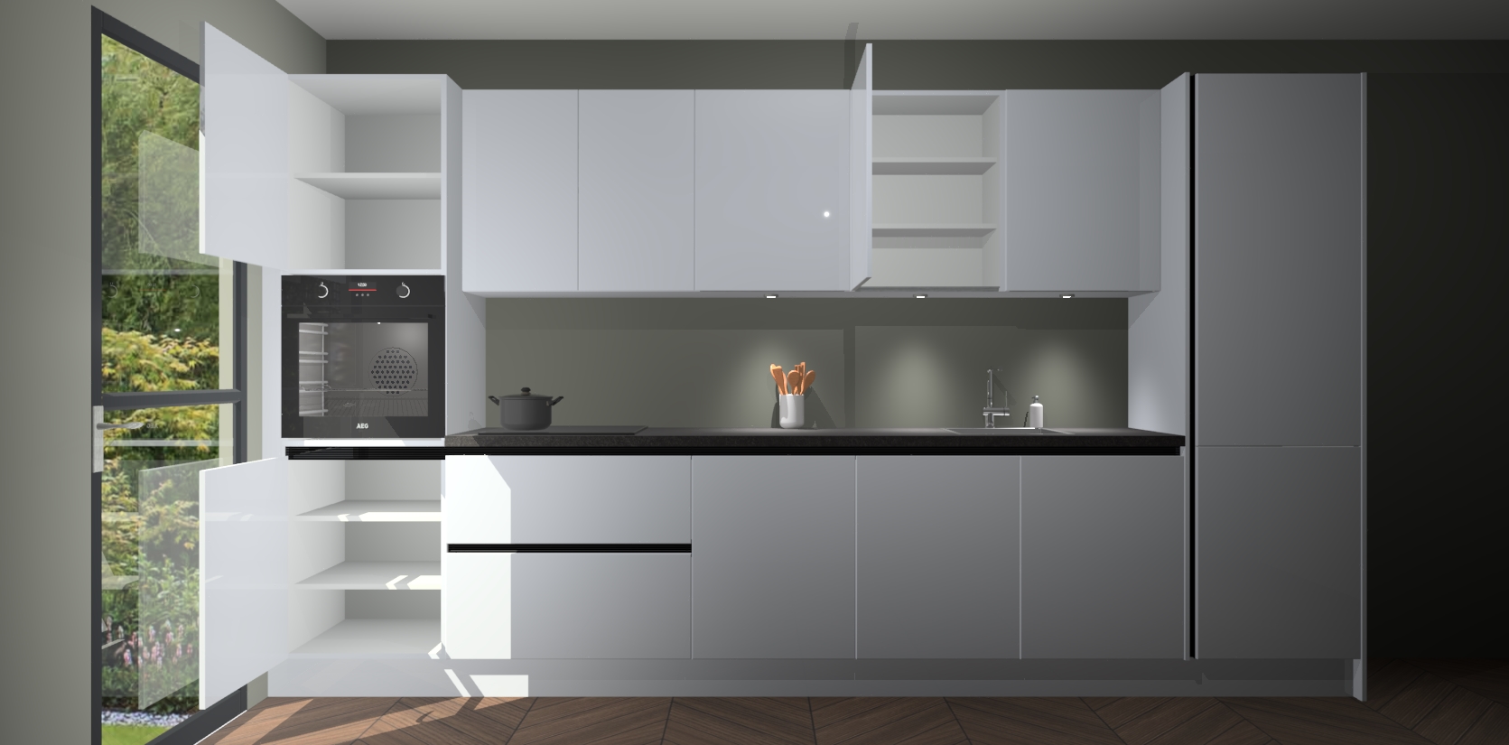 Dit is de perfecte keuken voor wie op zoek is naar een luxueuze stijl zonder zijn portemonnee te legen! Het chique ontwerp van de sneeuwwitte hoogglans greeploze keuken Wels voegt dat vleugje verfijning toe aan elk huis. Het gemak van voorgemonteerde kasten bespaart u talloze uren tijd en energie, zodat u veel sneller dan verwacht kunt beginnen te genieten van uw prachtige nieuwe keuken. Bovendien bedraagt de levertijd slechts 7 weken.