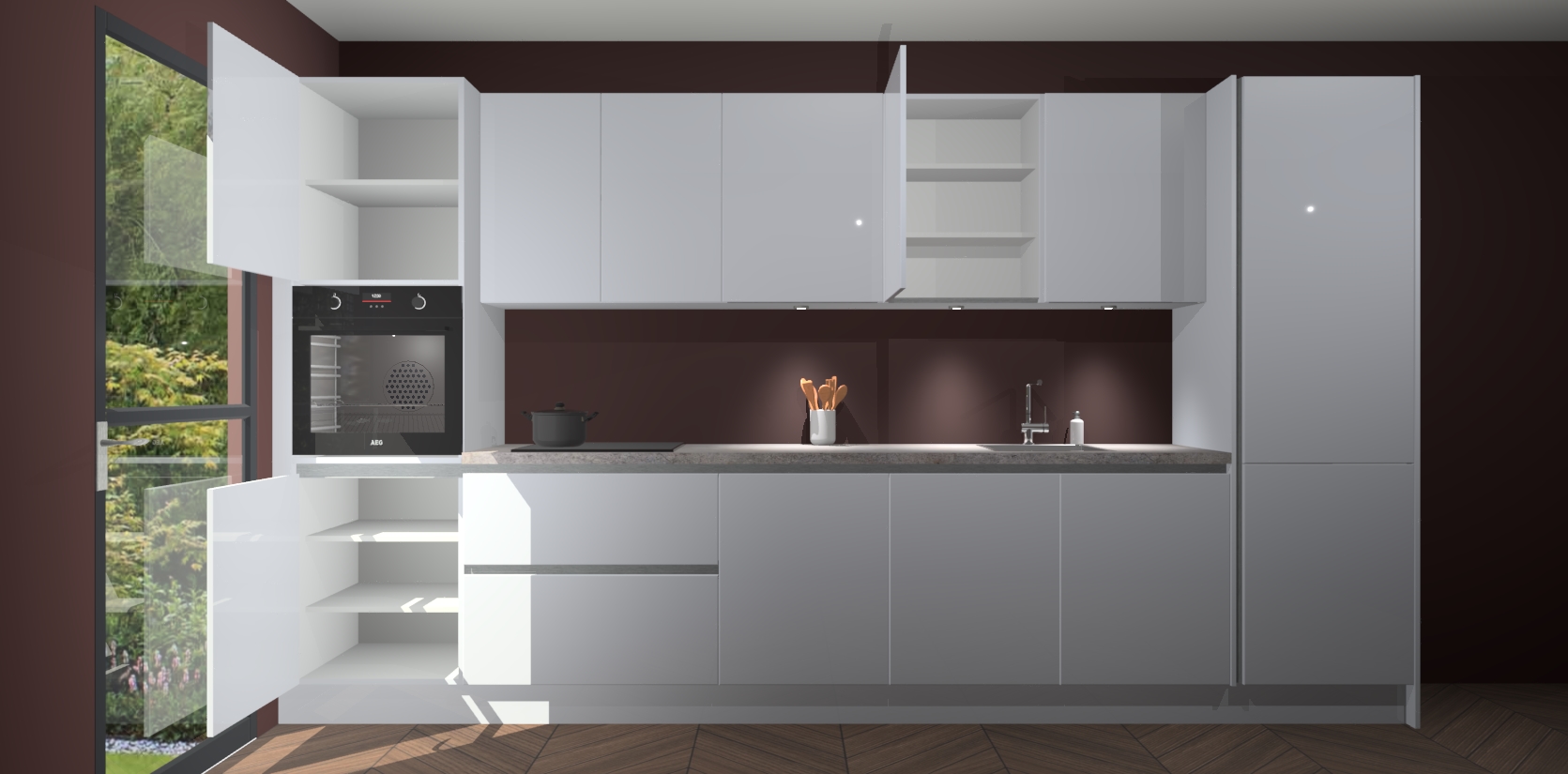 Dit is de perfecte keuken voor wie op zoek is naar een luxueuze stijl zonder zijn portemonnee te legen! Het chique ontwerp van de sneeuwwitte hoogglans greeploze keuken Wels voegt dat vleugje verfijning toe aan elk huis. Het gemak van voorgemonteerde kasten bespaart u talloze uren tijd en energie, zodat u veel sneller dan verwacht kunt beginnen te genieten van uw prachtige nieuwe keuken. Bovendien bedraagt de levertijd slechts 7 weken.