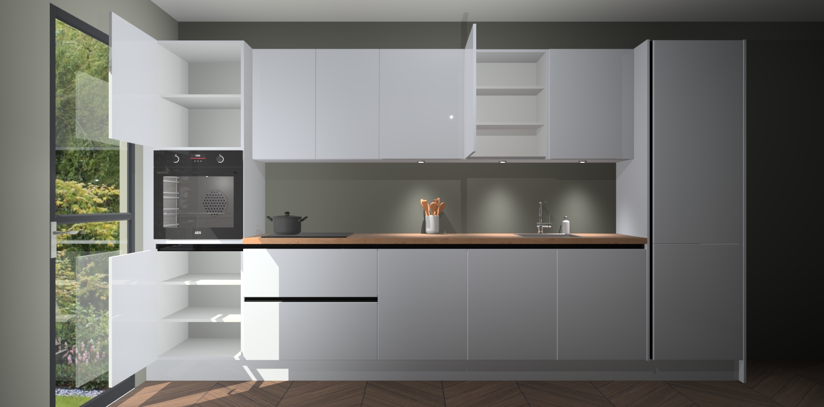 Dit is de perfecte keuken voor wie op zoek is naar een luxueuze stijl zonder zijn portemonnee te legen! Het chique ontwerp van de sneeuwwitte hoogglans greeploze keuken Wels voegt dat vleugje verfijning toe aan elk huis. Het gemak van voorgemonteerde kasten bespaart u talloze uren tijd en energie, zodat u veel sneller dan verwacht kunt beginnen te genieten van uw prachtige nieuwe keuken. Bovendien bedraagt de levertijd slechts 7 weken.
