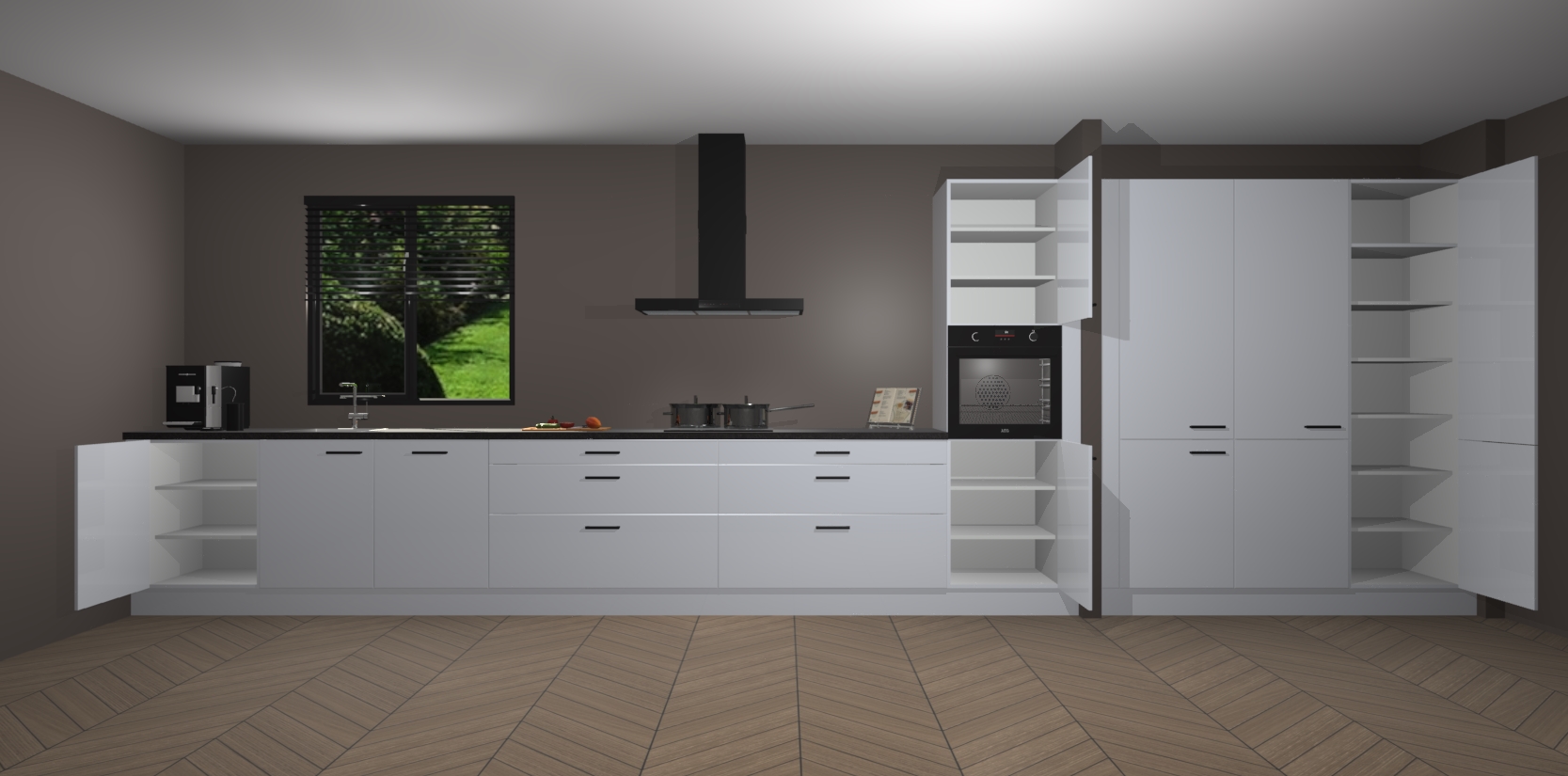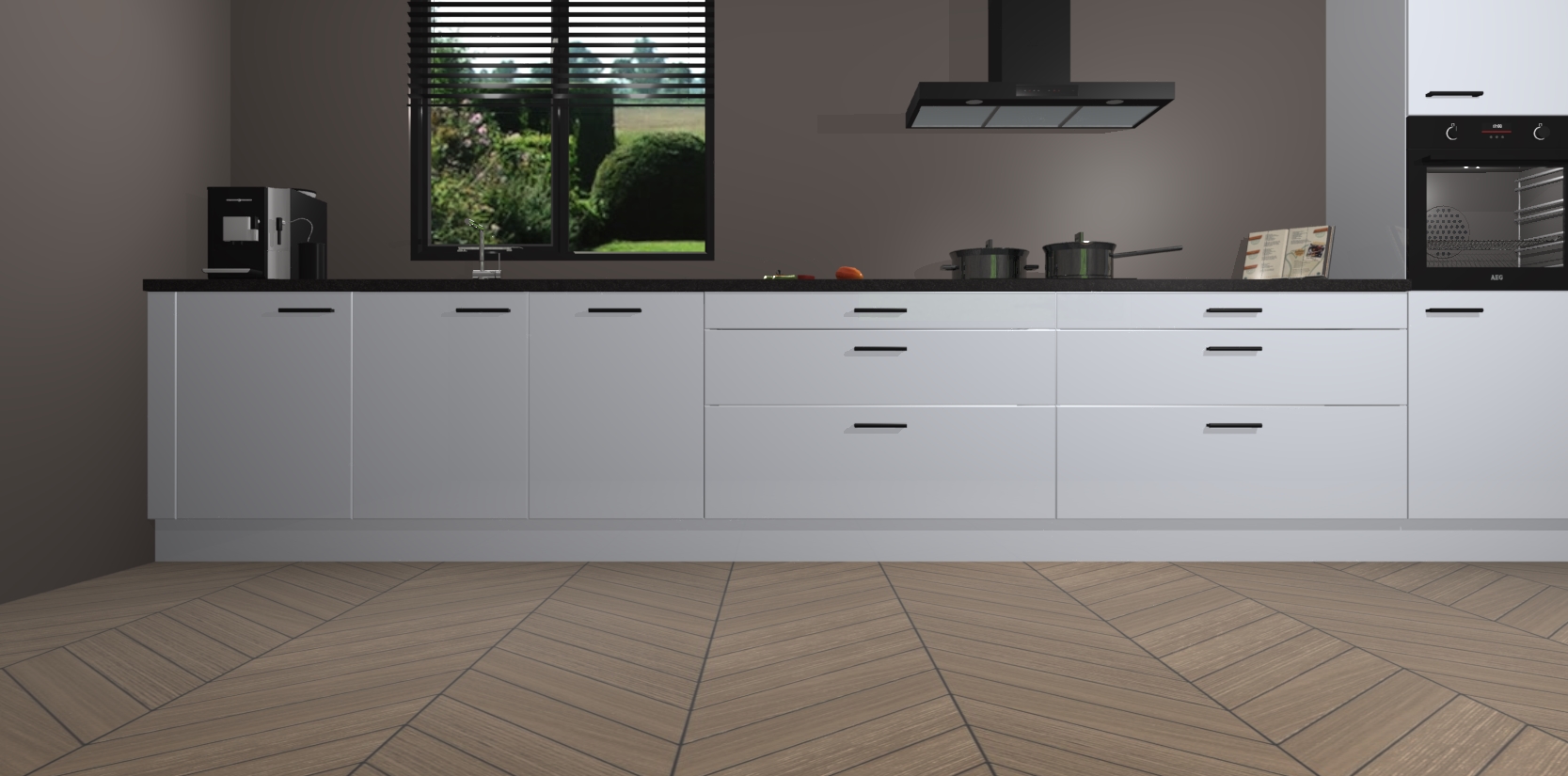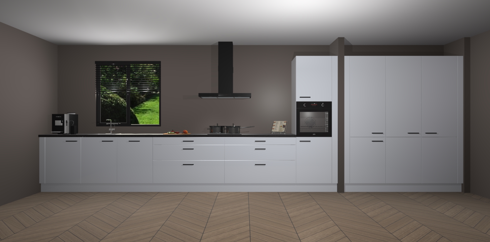 Een stijlvolle en praktische keuken als deze mag gezien worden. Dankzij de prachtige matte afwerking wordt de keuken gemakkelijk het middelpunt van uw huis - hij ziet er geweldig uit onder allerlei lichtomstandigheden, van dag tot nacht!