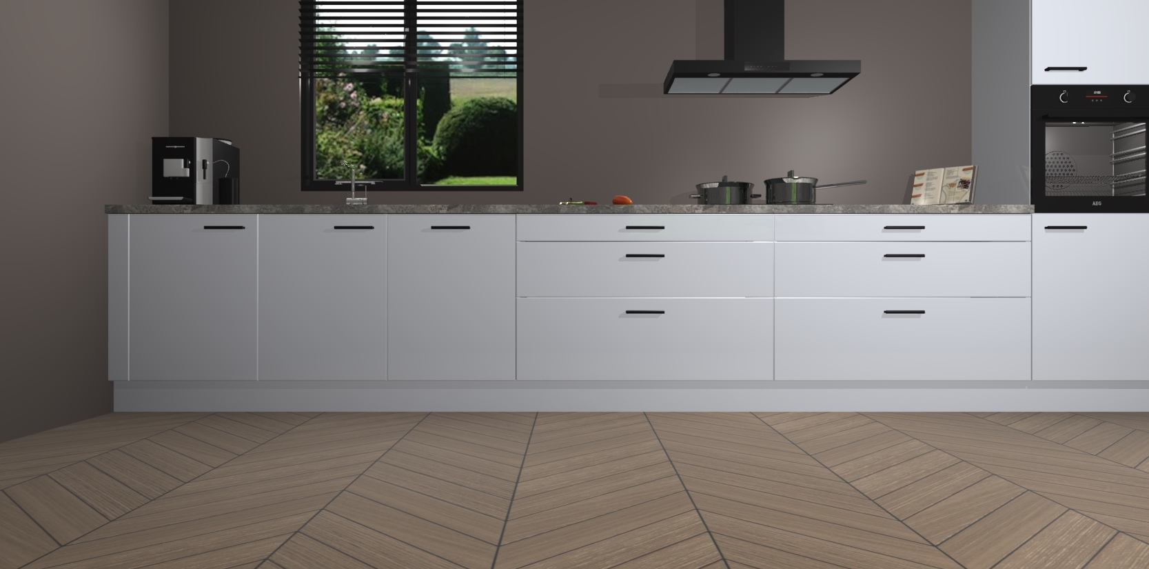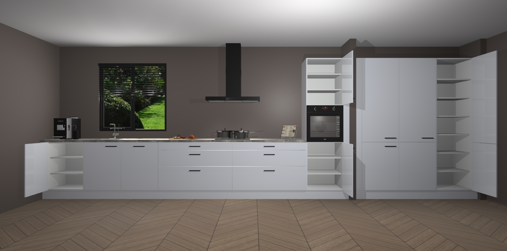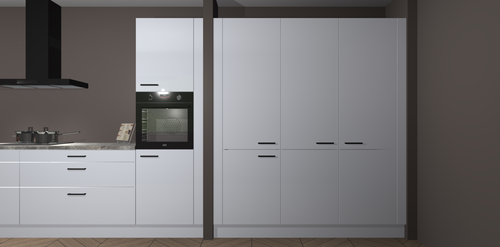 Een stijlvolle en praktische keuken als deze mag gezien worden. Dankzij de prachtige matte afwerking wordt de keuken gemakkelijk het middelpunt van uw huis - hij ziet er geweldig uit onder allerlei lichtomstandigheden, van dag tot nacht!