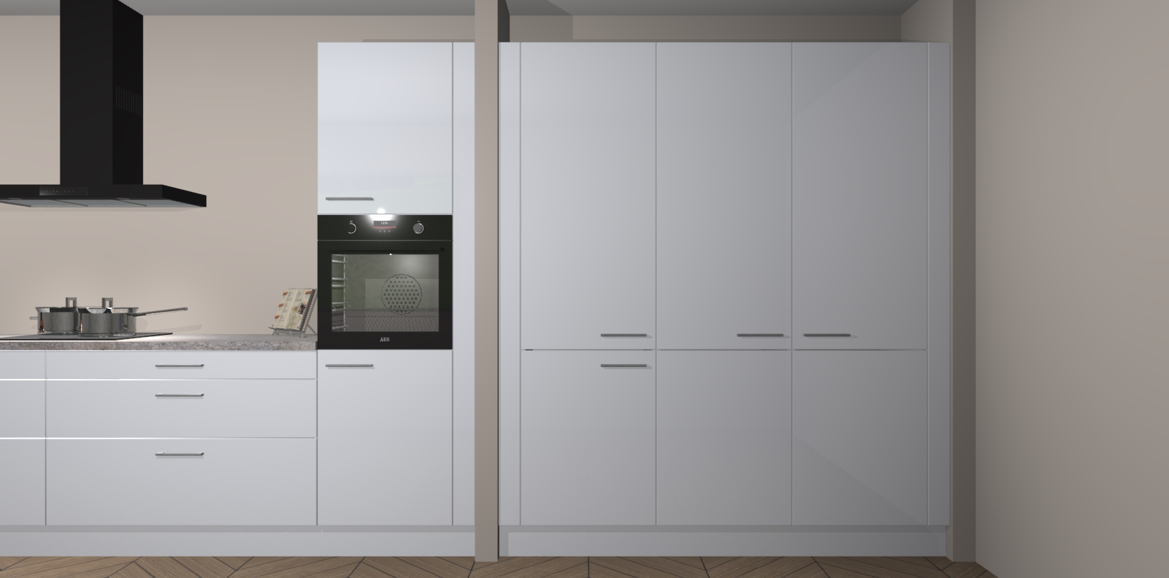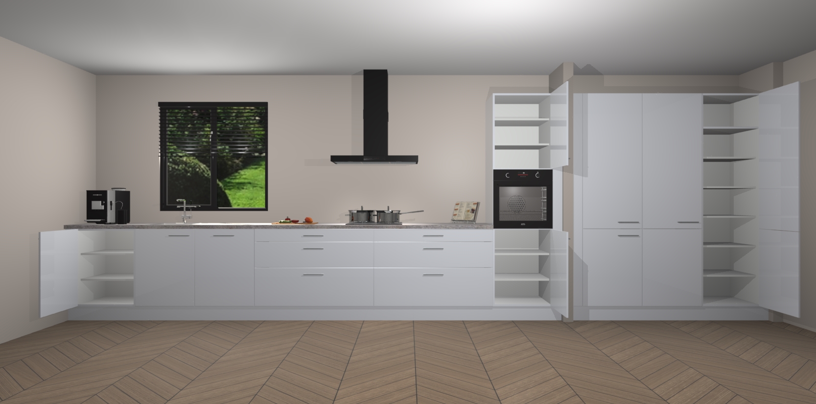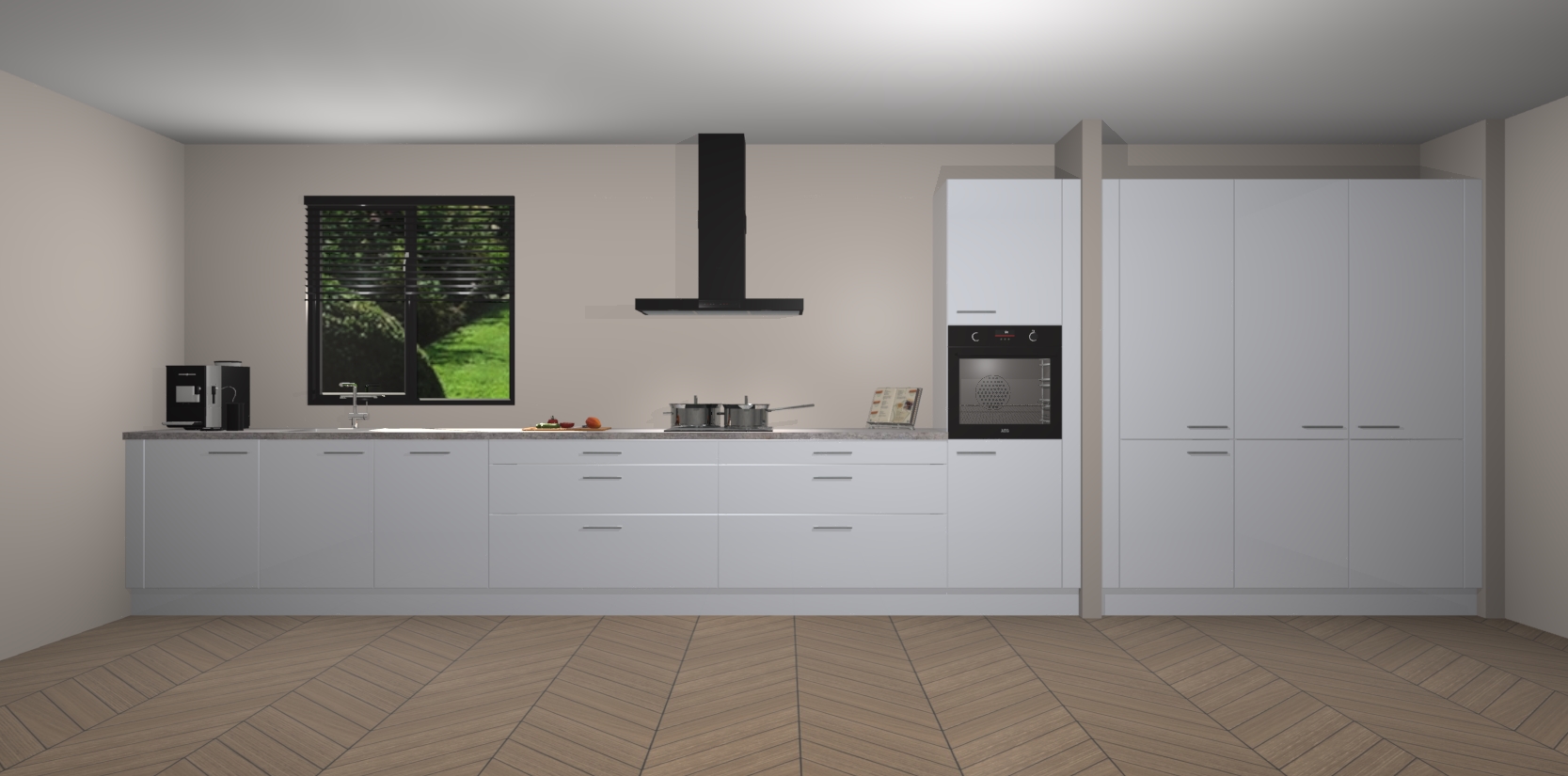 Een stijlvolle en praktische keuken als deze mag gezien worden. Dankzij de prachtige matte afwerking wordt de keuken gemakkelijk het middelpunt van uw huis - hij ziet er geweldig uit onder allerlei lichtomstandigheden, van dag tot nacht!