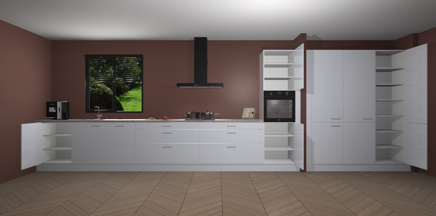 Een stijlvolle en praktische keuken als deze mag gezien worden. Dankzij de prachtige matte afwerking wordt de keuken gemakkelijk het middelpunt van uw huis - hij ziet er geweldig uit onder allerlei lichtomstandigheden, van dag tot nacht!