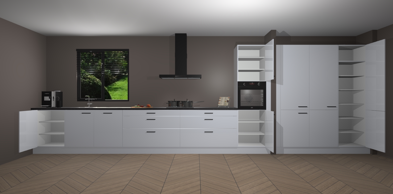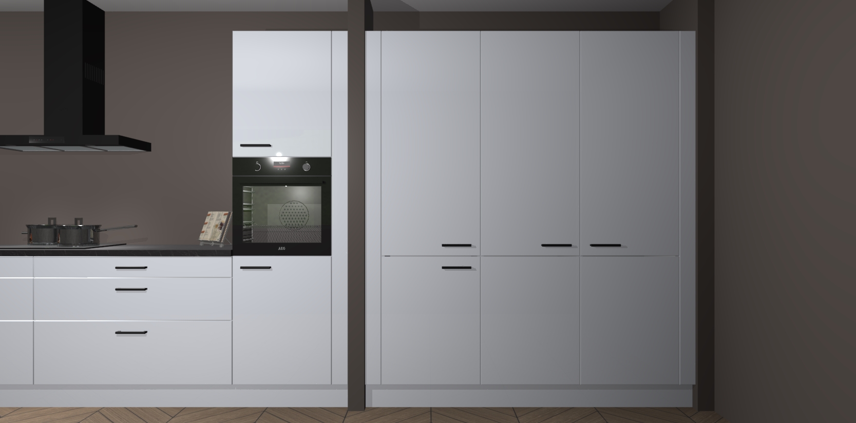 Een stijlvolle en praktische keuken als deze mag gezien worden. Dankzij de prachtige matte afwerking wordt de keuken gemakkelijk het middelpunt van uw huis - hij ziet er geweldig uit onder allerlei lichtomstandigheden, van dag tot nacht!