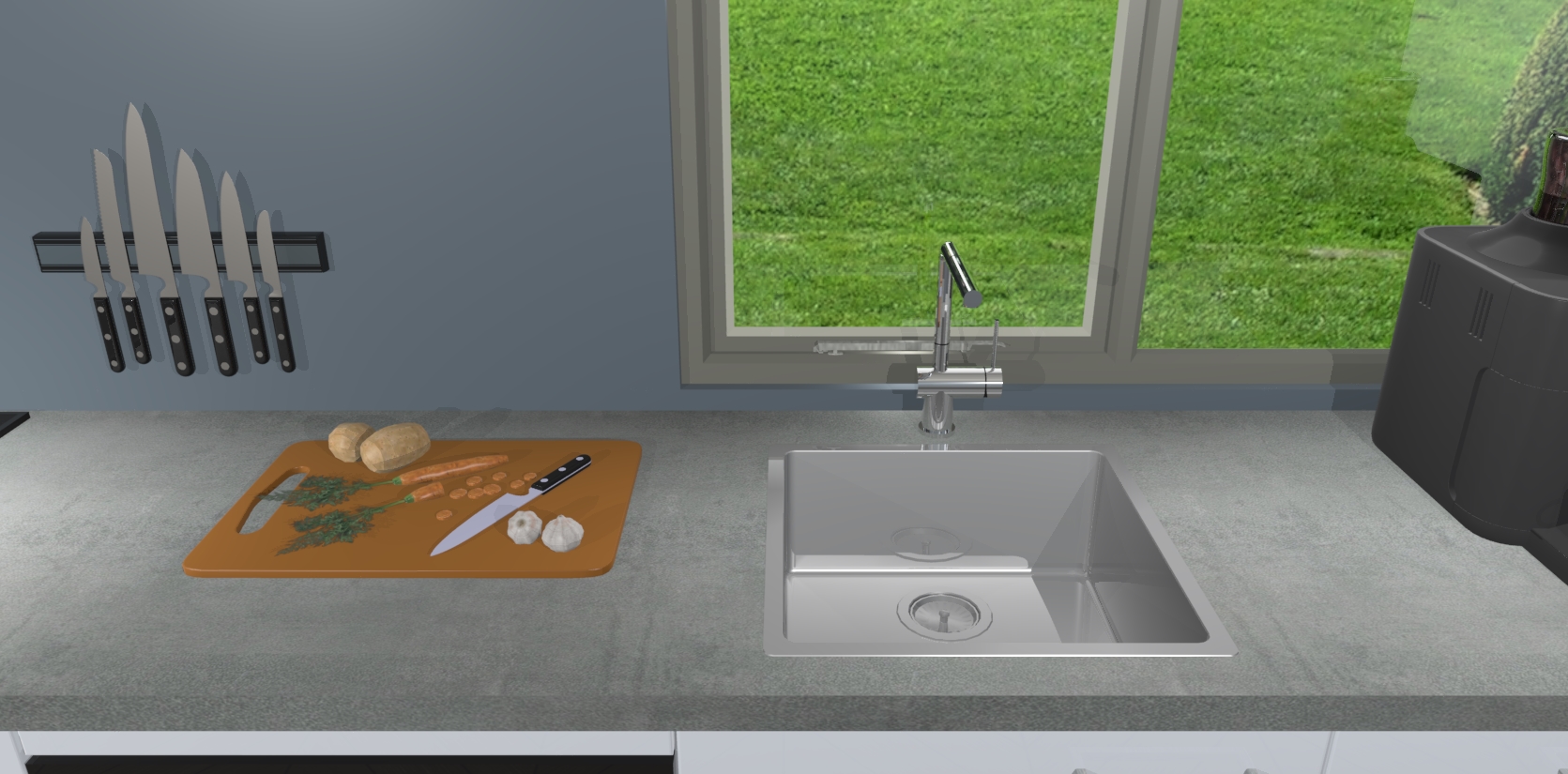 - De spoelbak is nog niet in gevreesd. Dit dient tijdens het werk gedaan te worden