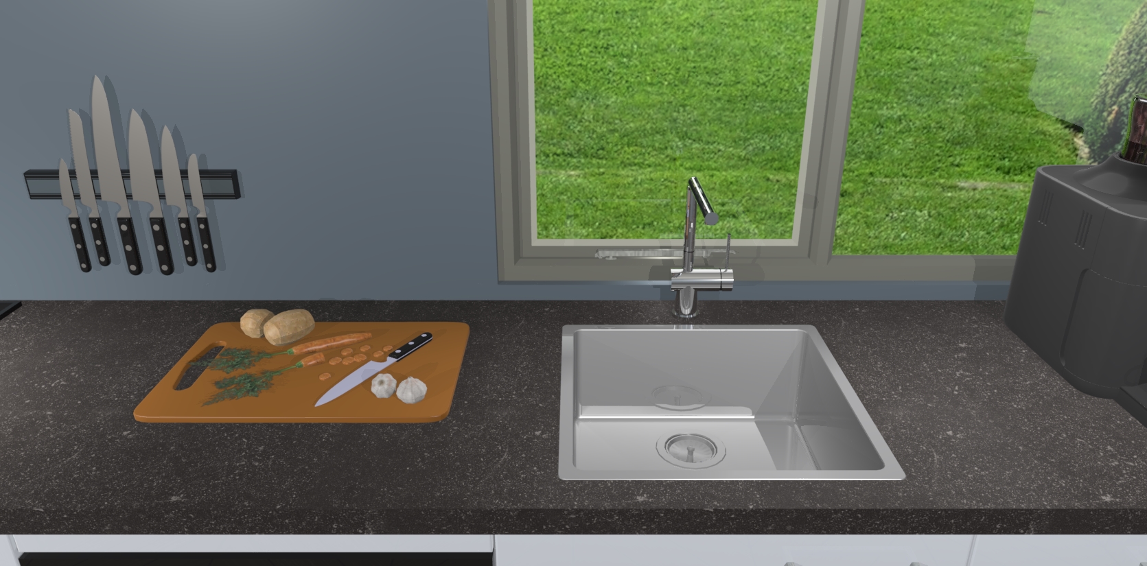 - De spoelbak is nog niet in gevreesd. Dit dient tijdens het werk gedaan te worden