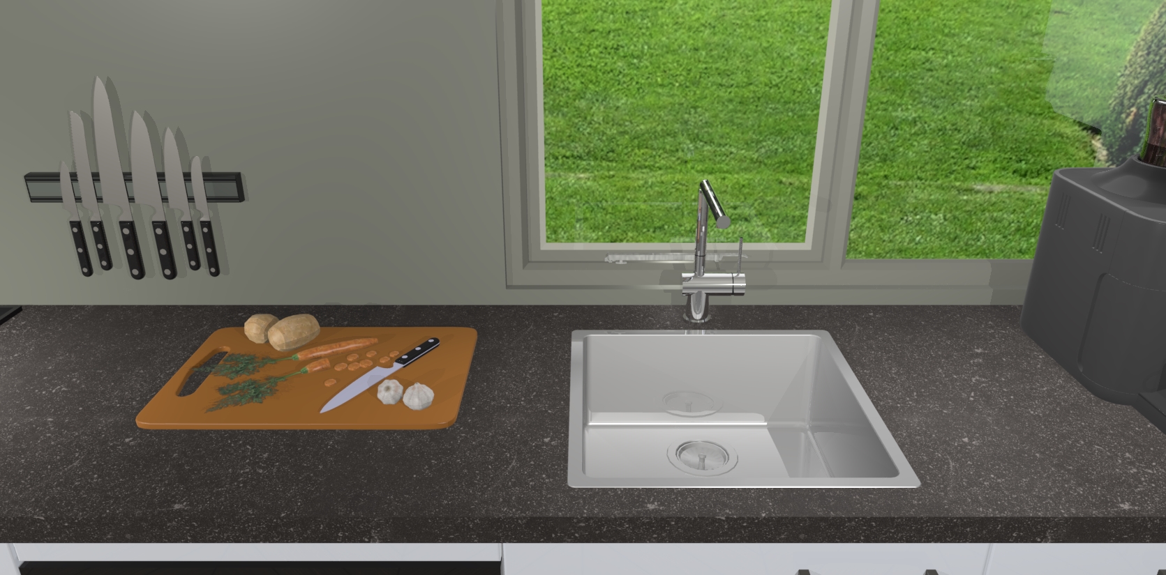 - De spoelbak is nog niet in gevreesd. Dit dient tijdens het werk gedaan te worden