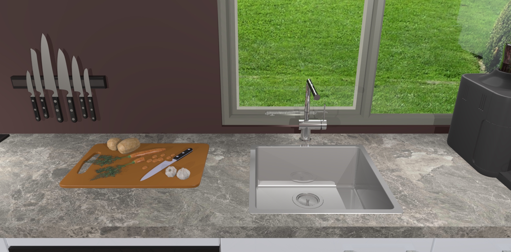 - De spoelbak is nog niet in gevreesd. Dit dient tijdens het werk gedaan te worden