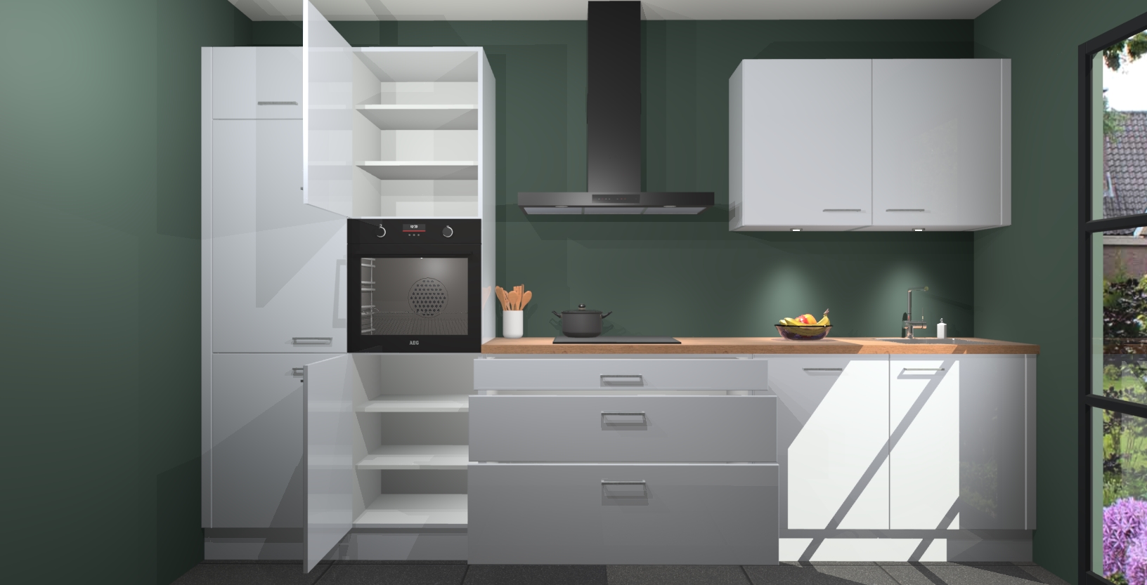 Bovendien is er veel opbergruimte met deze pracht keuken, zodat u ervoor kunt zorgen dat uw kasten en lades altijd georganiseerd zijn - iets wat iedereen waardeert in een drukke keuken. Niemand houdt van een lawaaierige keuken als u de deuren opent en sluit; dankzij de soft close technologie gaat het openen en sluiten van de deuren geruisloos! Bovendien krijgt u de levering binnen 7 weken - hoe geweldig is dat?