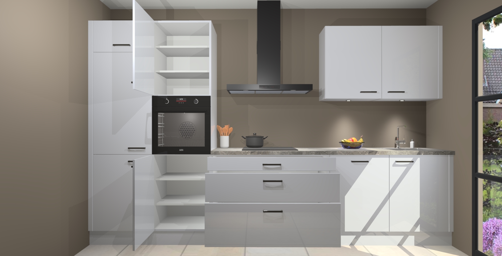 Bovendien is er veel opbergruimte met deze pracht keuken, zodat u ervoor kunt zorgen dat uw kasten en lades altijd georganiseerd zijn - iets wat iedereen waardeert in een drukke keuken. Niemand houdt van een lawaaierige keuken als u de deuren opent en sluit; dankzij de soft close technologie gaat het openen en sluiten van de deuren geruisloos! Bovendien krijgt u de levering binnen 7 weken - hoe geweldig is dat?