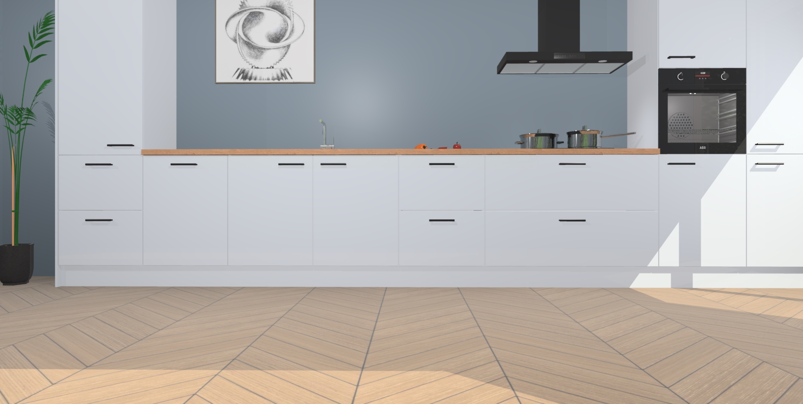 Inclusief plinten, stelpoten en werkblad