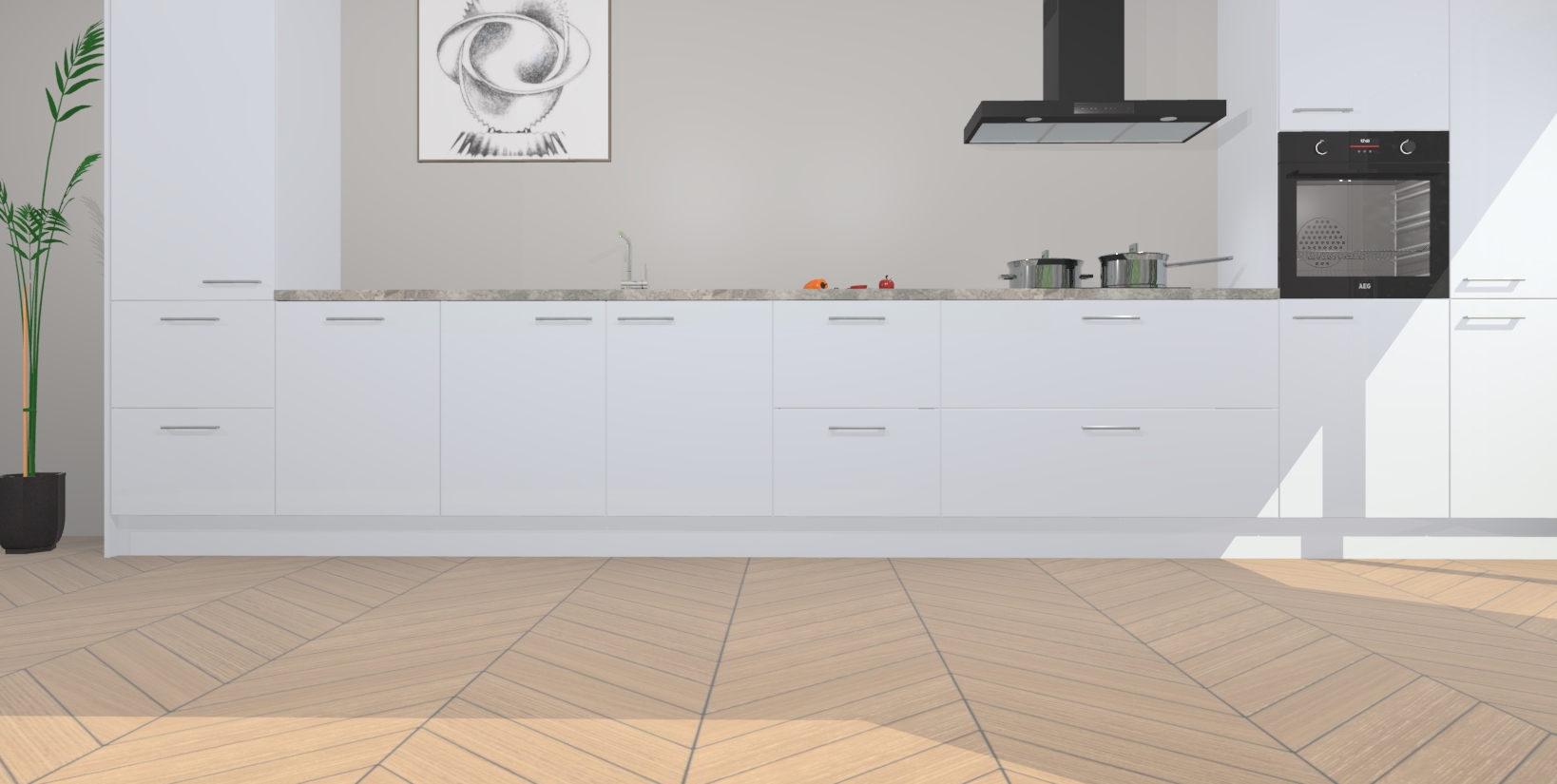 Inclusief plinten, stelpoten en werkblad