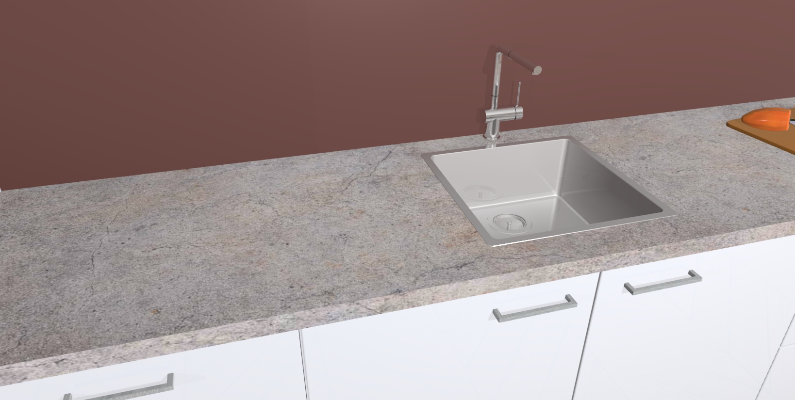 - De spoelbak is nog niet in gevreesd. Dit dient tijdens het werk gedaan te worden