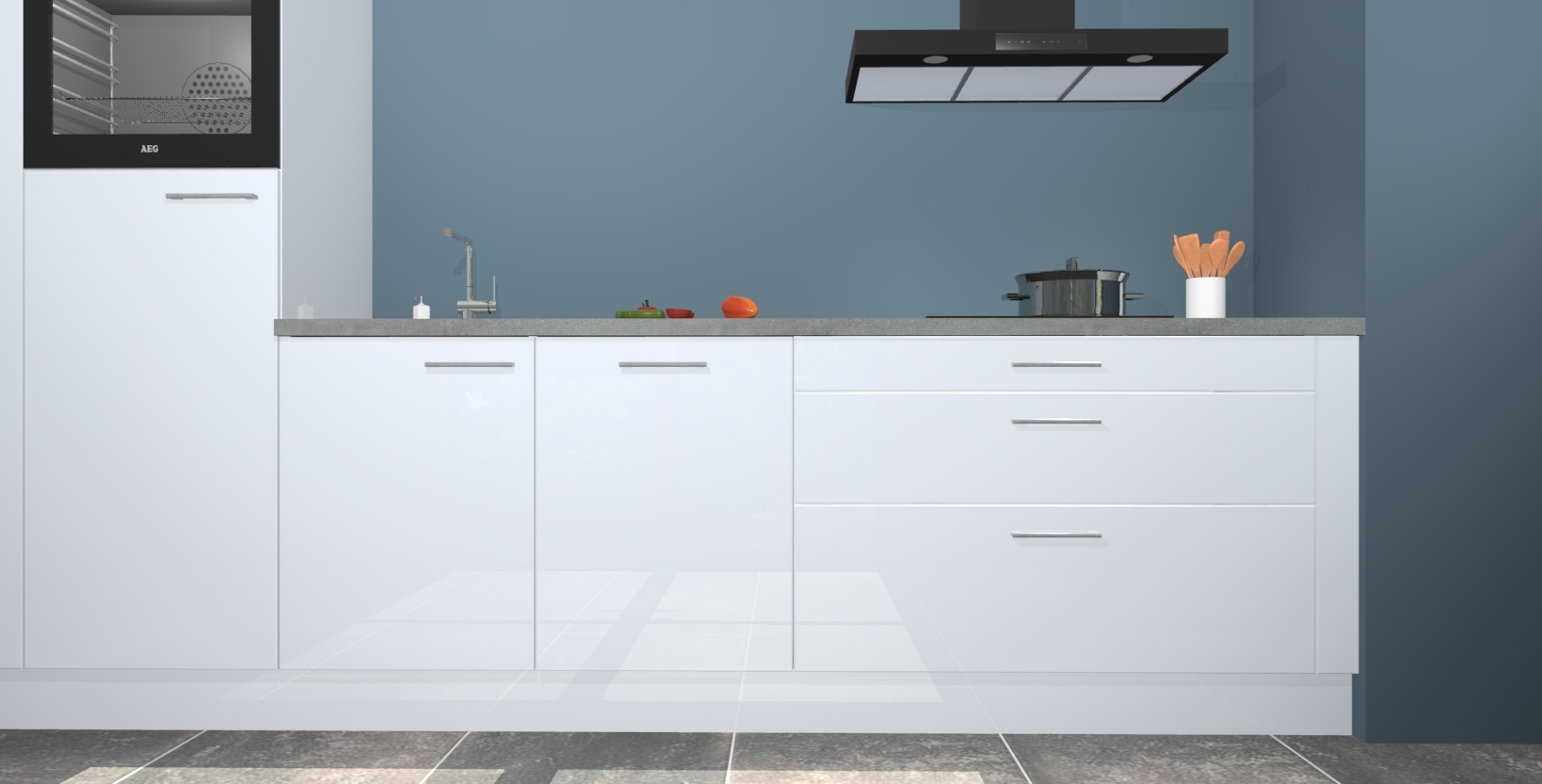 Inclusief plinten, stelpoten en werkblad