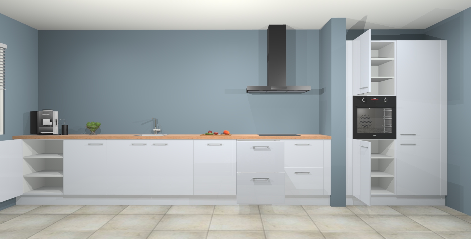Met de Sneeuwwitte hoogglans keuken Elzas Maakt u van uw keuken het pronkstuk van uw huis. Stijlvol en toch praktisch, de nieuwste look voor wie meer waarde en charme aan zijn huis wil toevoegen. Met prachtige handgrepen die zich lenen voor een klassieke stijlbron, zal u niet teleurgesteld zijn in het resultaat. De soft-close deurscharnieren geven een gevoel van luxe omdat ze zachtjes bewegen zonder storende of krakende geluiden te veroorzaken.