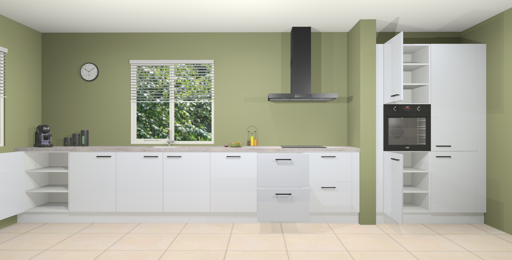 Met de Sneeuwwitte hoogglans keuken Elzas Maakt u van uw keuken het pronkstuk van uw huis. Stijlvol en toch praktisch, de nieuwste look voor wie meer waarde en charme aan zijn huis wil toevoegen. Met prachtige handgrepen die zich lenen voor een klassieke stijlbron, zal u niet teleurgesteld zijn in het resultaat. De soft-close deurscharnieren geven een gevoel van luxe omdat ze zachtjes bewegen zonder storende of krakende geluiden te veroorzaken.